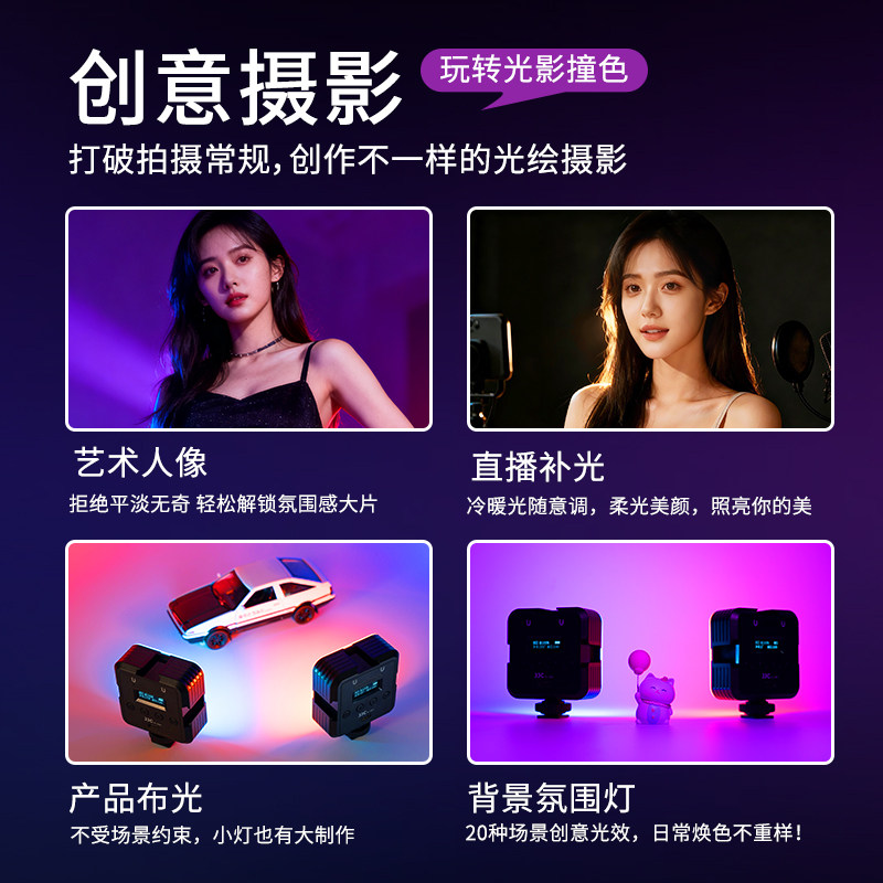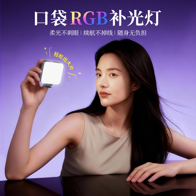 JJC 口袋RGB补光灯美颜豆腐灯适用R50 ZVE10迷你led无线柔光手机拍照打光氛围直播相机微单vlog多色美食手办