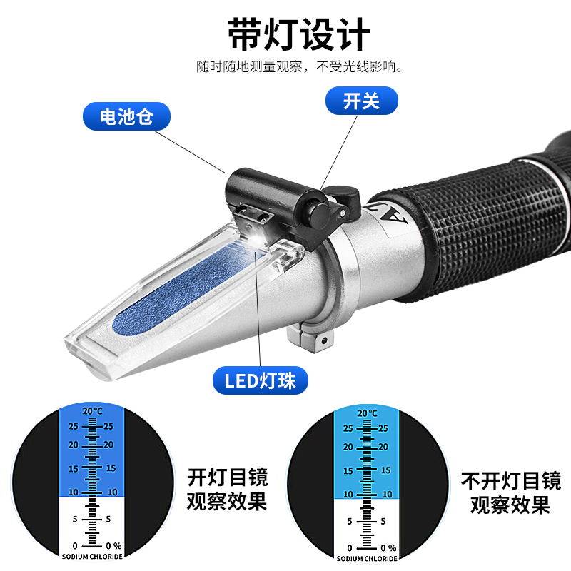 光学盐度计海水养殖水族卤水食品比重计密度盐度计折光仪新款带灯
