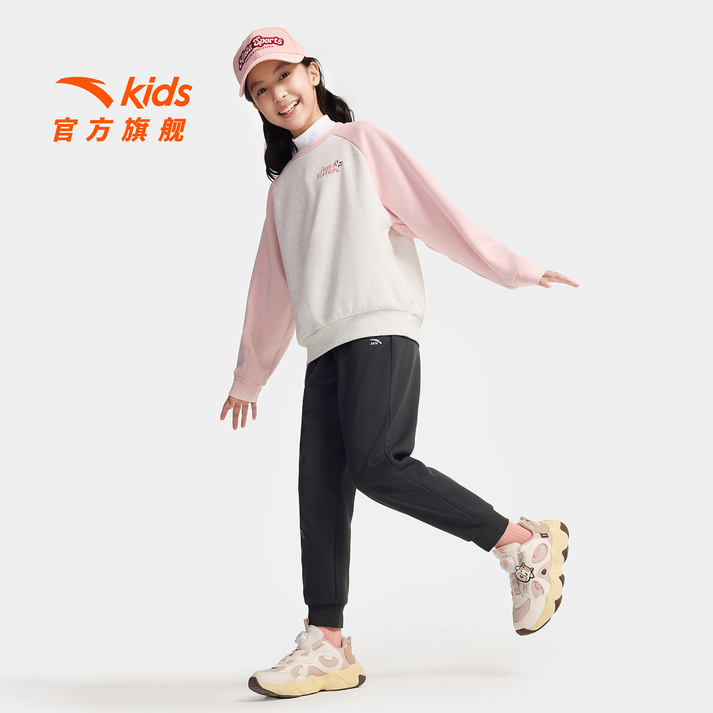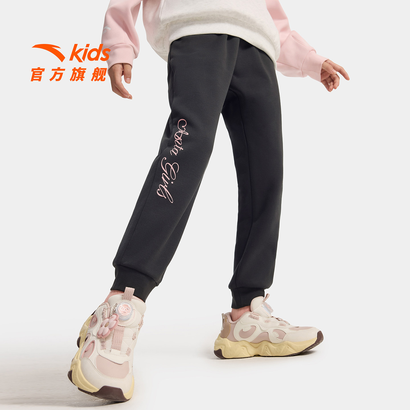 安踏儿童女童针织运动长裤2025冬季新款舒适保暖中大童摇粒绒裤子