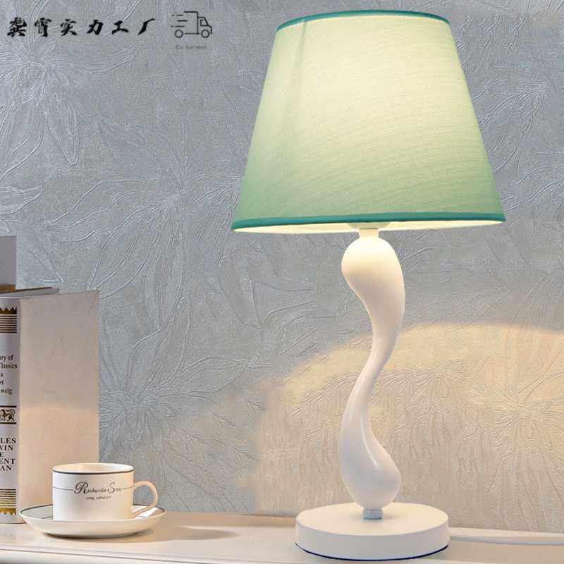 现代简约时尚卧室床头书房台灯 创意时尚蓝色布艺遥控台灯饰灯具
