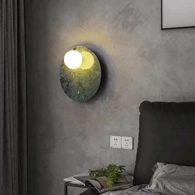 酒店玄关卧室民宿酒吧咖啡厅餐厅过道轻奢日式绿色大理石墙壁灯