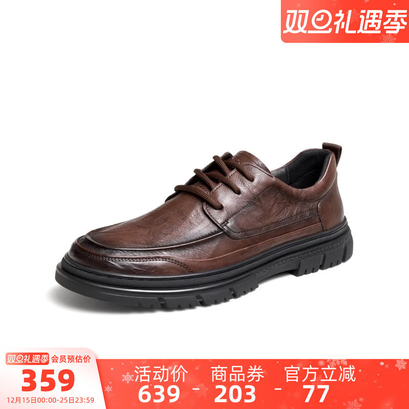 骆驼男鞋2025秋季新款真皮软底通勤英伦复古抓纹正装休闲商务皮鞋