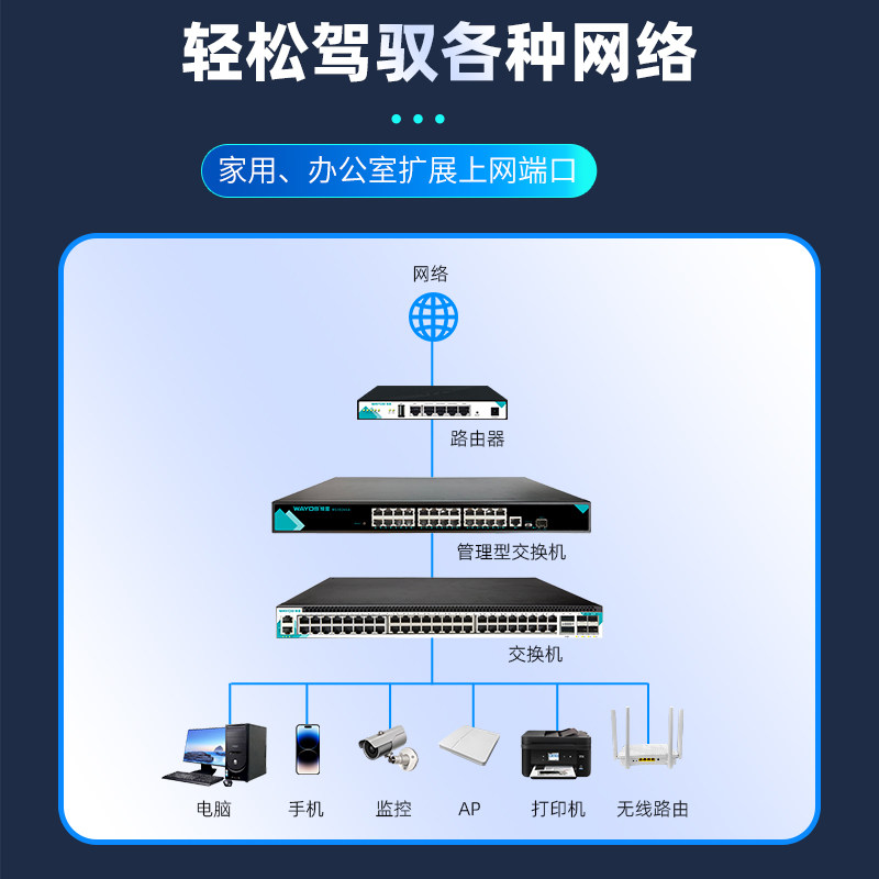 wayos维盟全千兆云管理型POE交换机10口18口26口WEB手机APP小程序远程管理网管型机架式VLAN汇聚故障排查