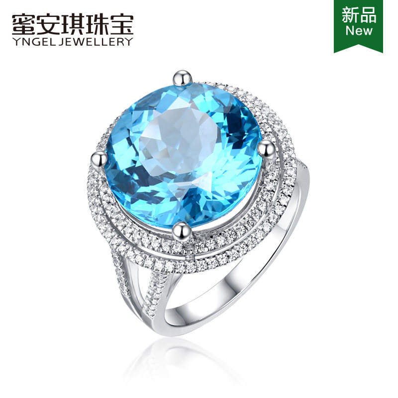 蜜安琪 12克拉托帕石戒指 天然18K金镶嵌宝石钻石戒指 贵重彩宝