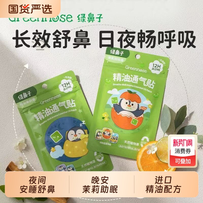 绿鼻子儿童通鼻贴宝宝植物精油婴儿鼻塞小儿鼻通贴成人鼻舒贴通气