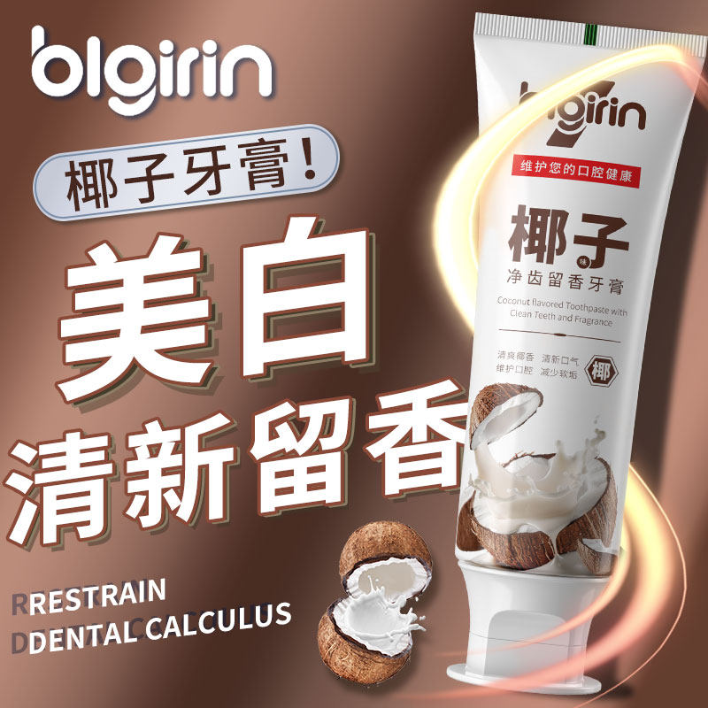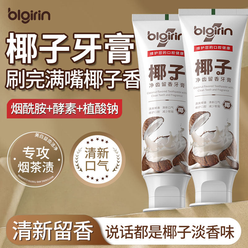 百力巨人椰子留香牙膏烟酰胺美白去黄渍清新口气防蛀护龈抑菌留香
