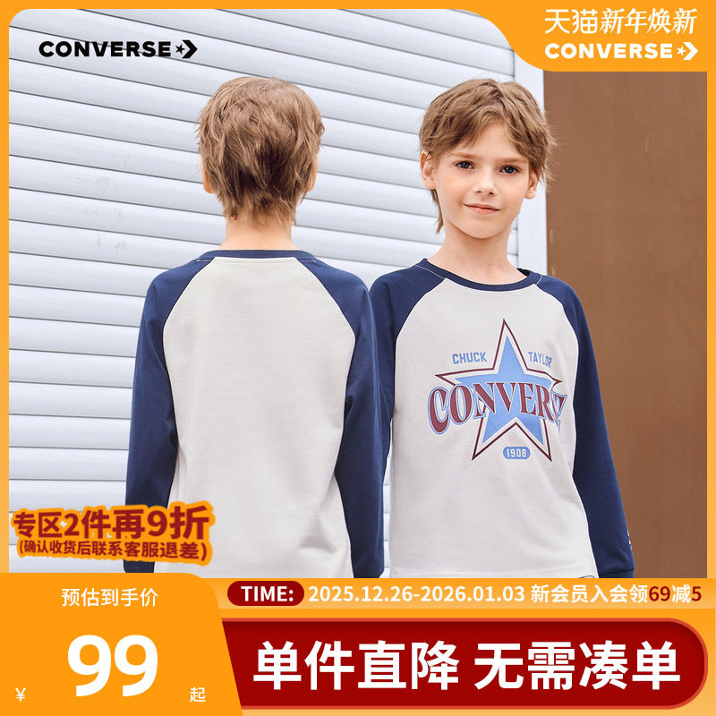 匡威童装男童长袖T恤2025冬季新款插肩袖印花百搭中大童打底衫潮