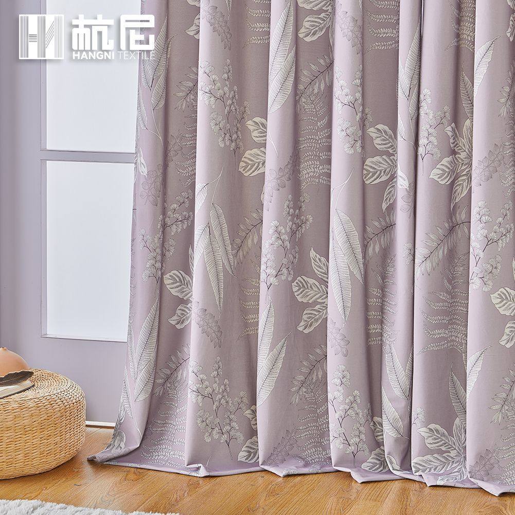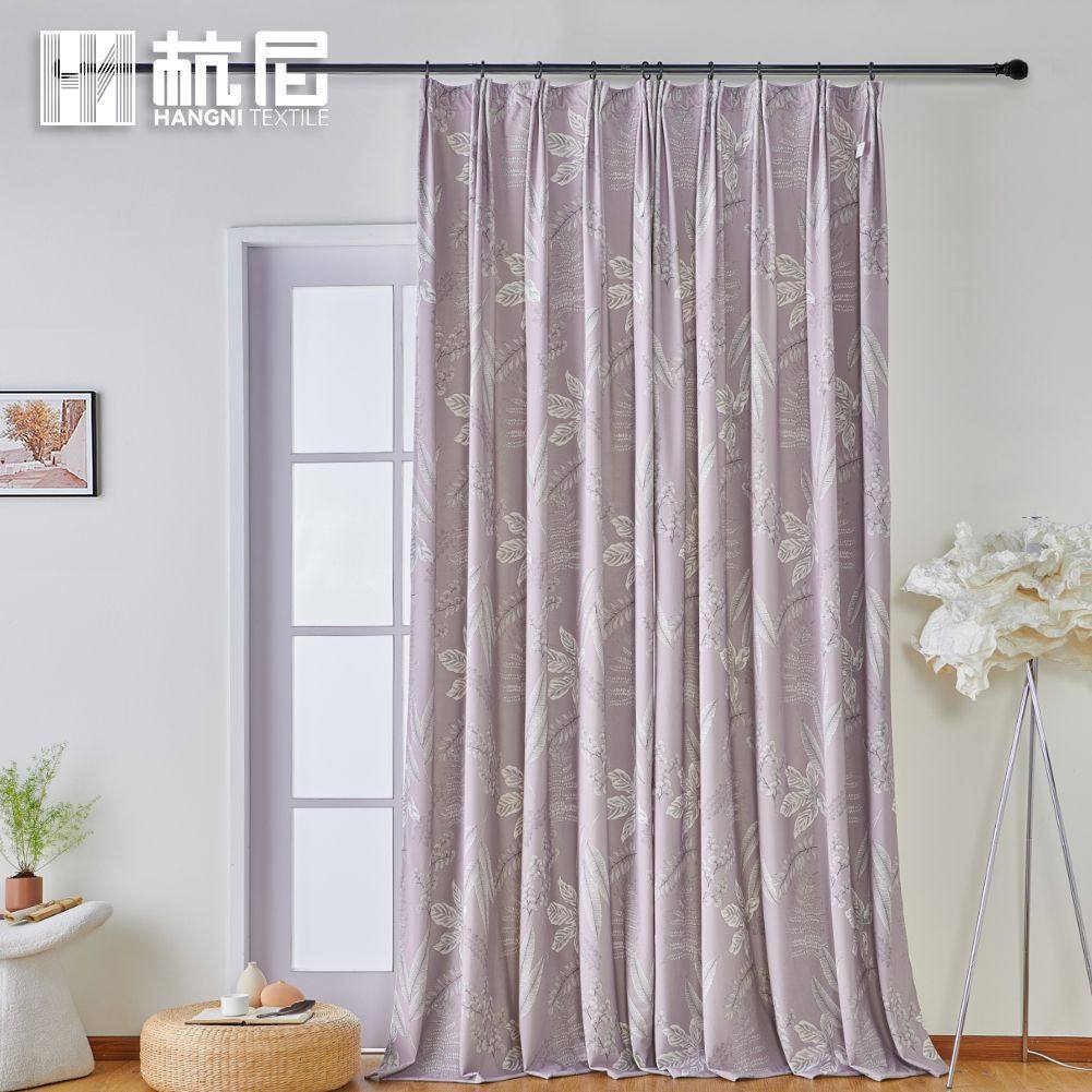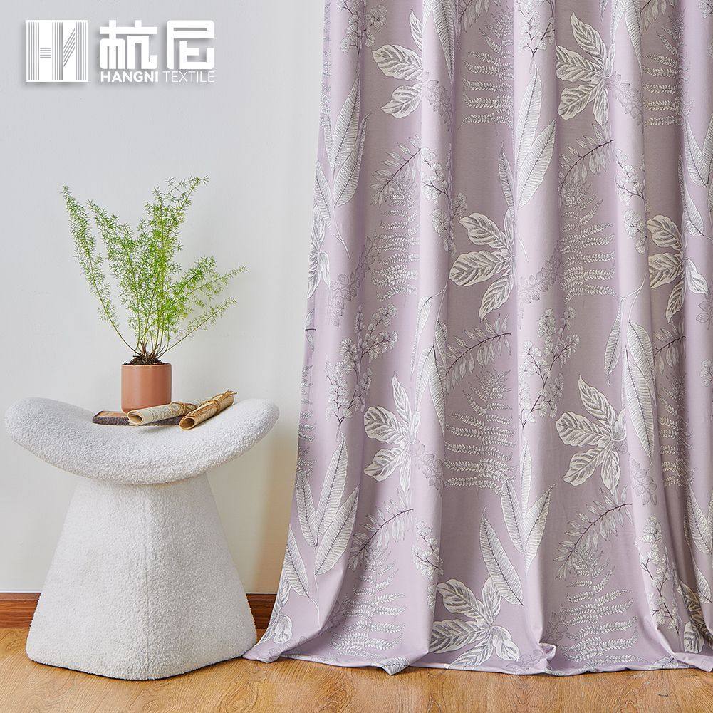 紫色植物印花窗帘布美式印花遮光窗帘卧室家用成品窗帘