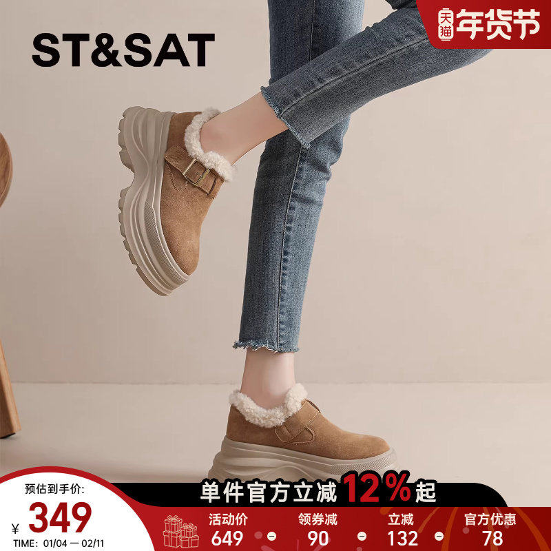 星期六厚底增高雪地靴女款2025新款冬季加绒保暖全包勃肯棉鞋