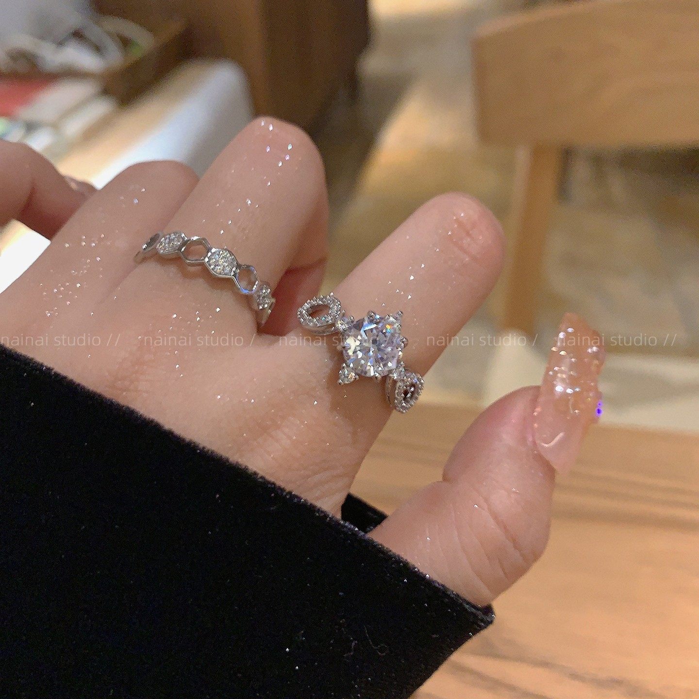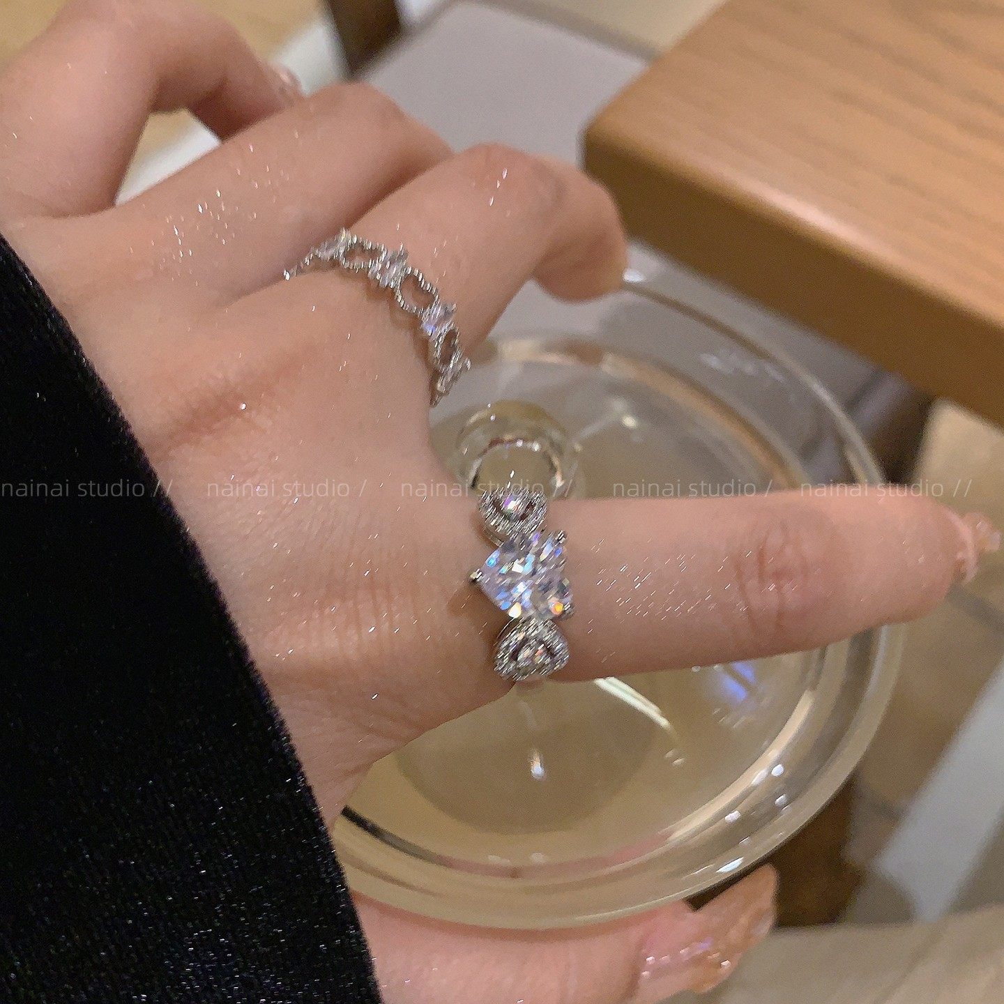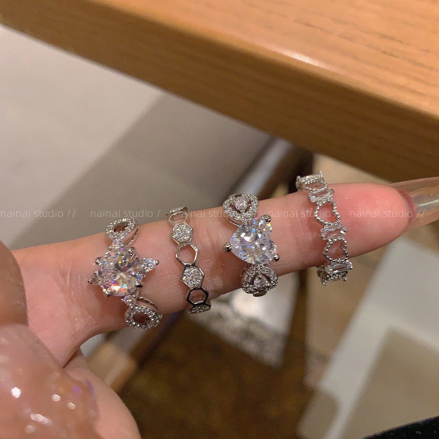 bling锆石戒指~爱心超闪高级感轻奢食指戒叠戴2023年新款指环女潮
