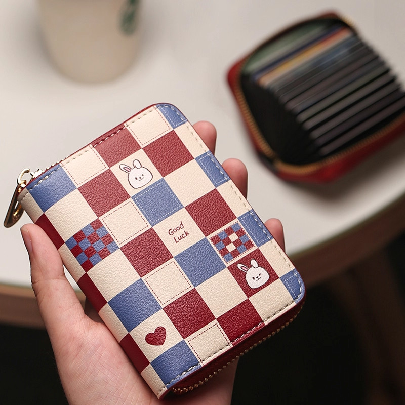 稻草人卡包女士新款证件女式牛皮小巧真皮拉链钱夹小众银行卡钱包