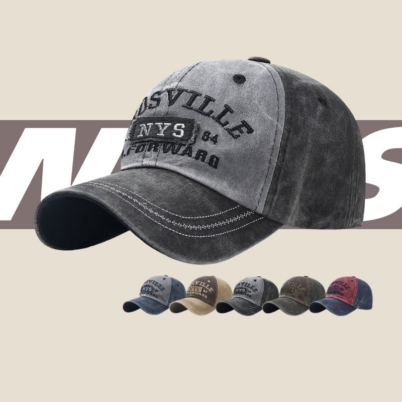 棒球帽女2024秋冬新款美式显脸小复古水洗男款牛仔鸭舌帽软顶帽子