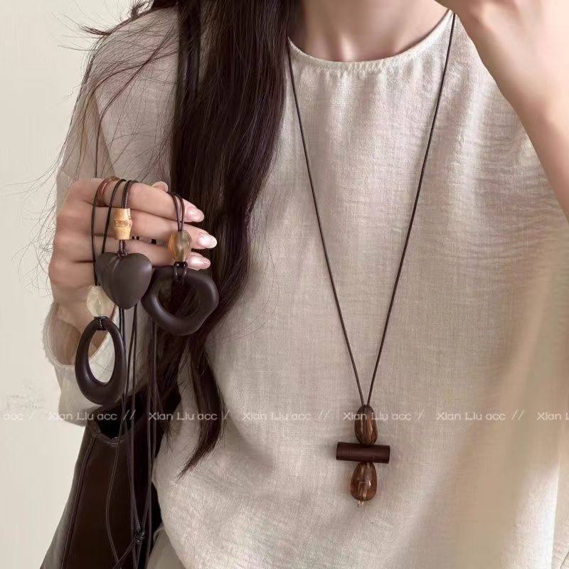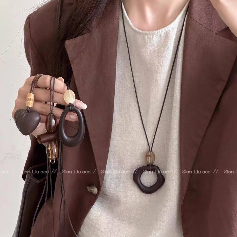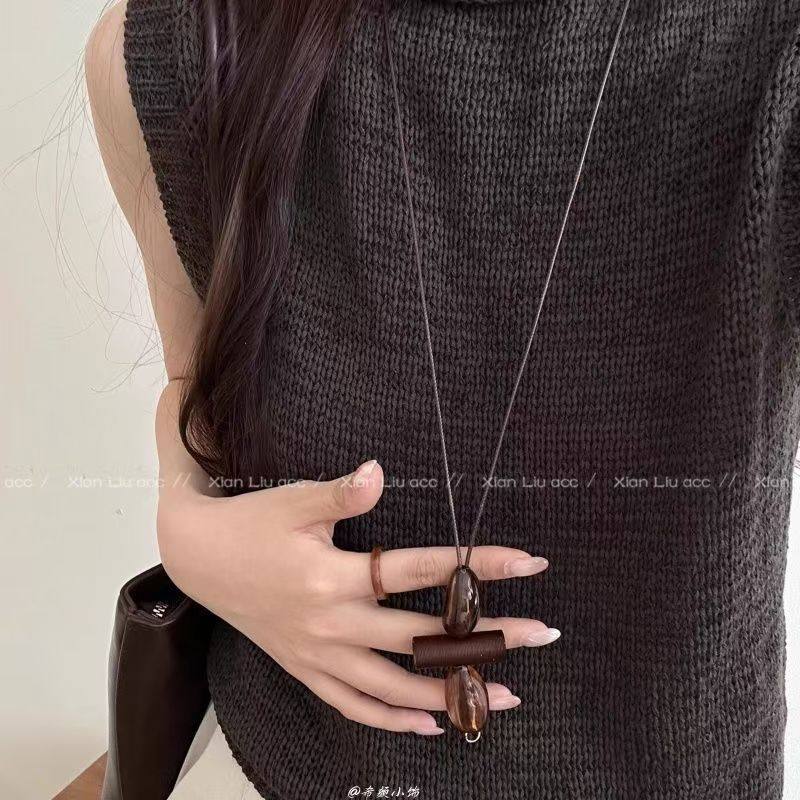 美拉德波西米亚叠戴毛衣项链女棕色复古穿搭choker锁骨链高级配饰