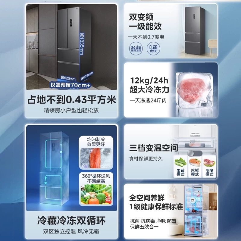 【全国补贴】美的325法式冰箱以旧换新家用风冷无霜变频一级能效