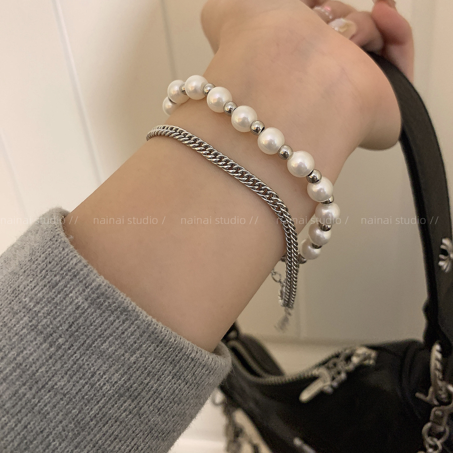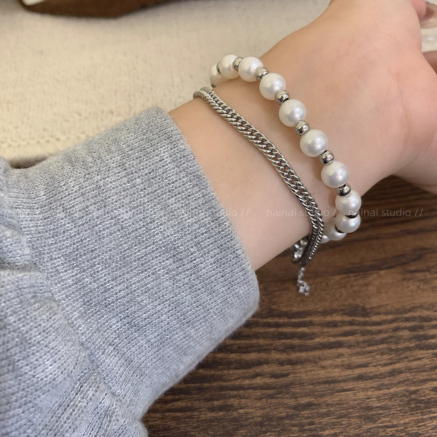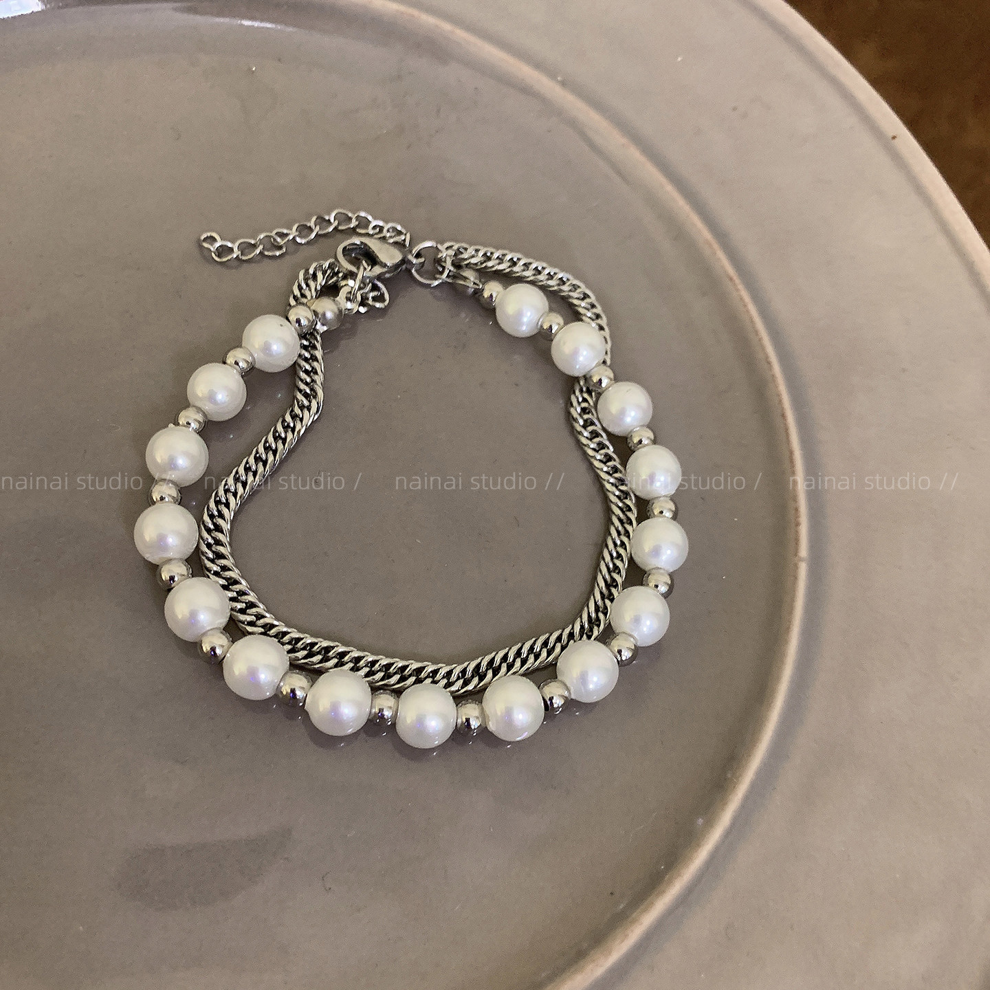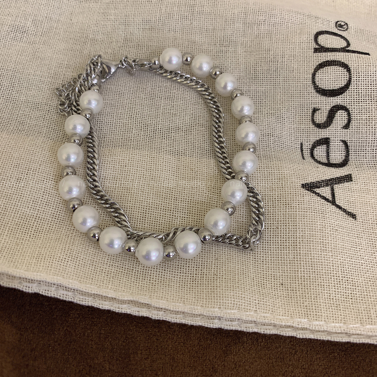 珍珠双层手链~钛钢不掉色!冷淡风小众设计高级感手饰手镯配饰女A