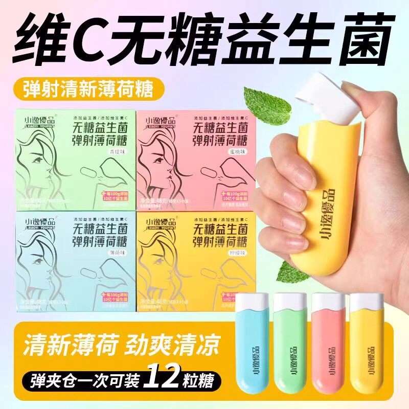 益生菌含片弹射无糖薄荷糖口香糖弹射仓运动便携口香糖零食糖果