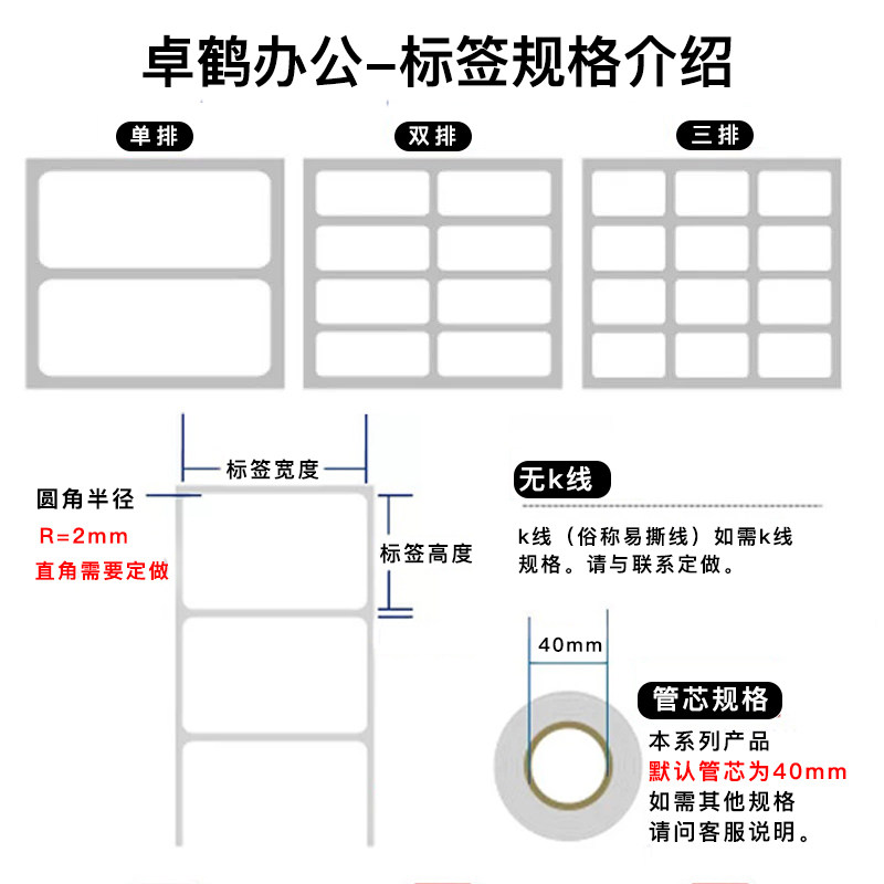 如歌彩色热敏标签纸 三防染色热敏打印纸外箱标识贴纸30 40 50 60 70 80 90 支持定制印刷 不干胶彩色热敏纸