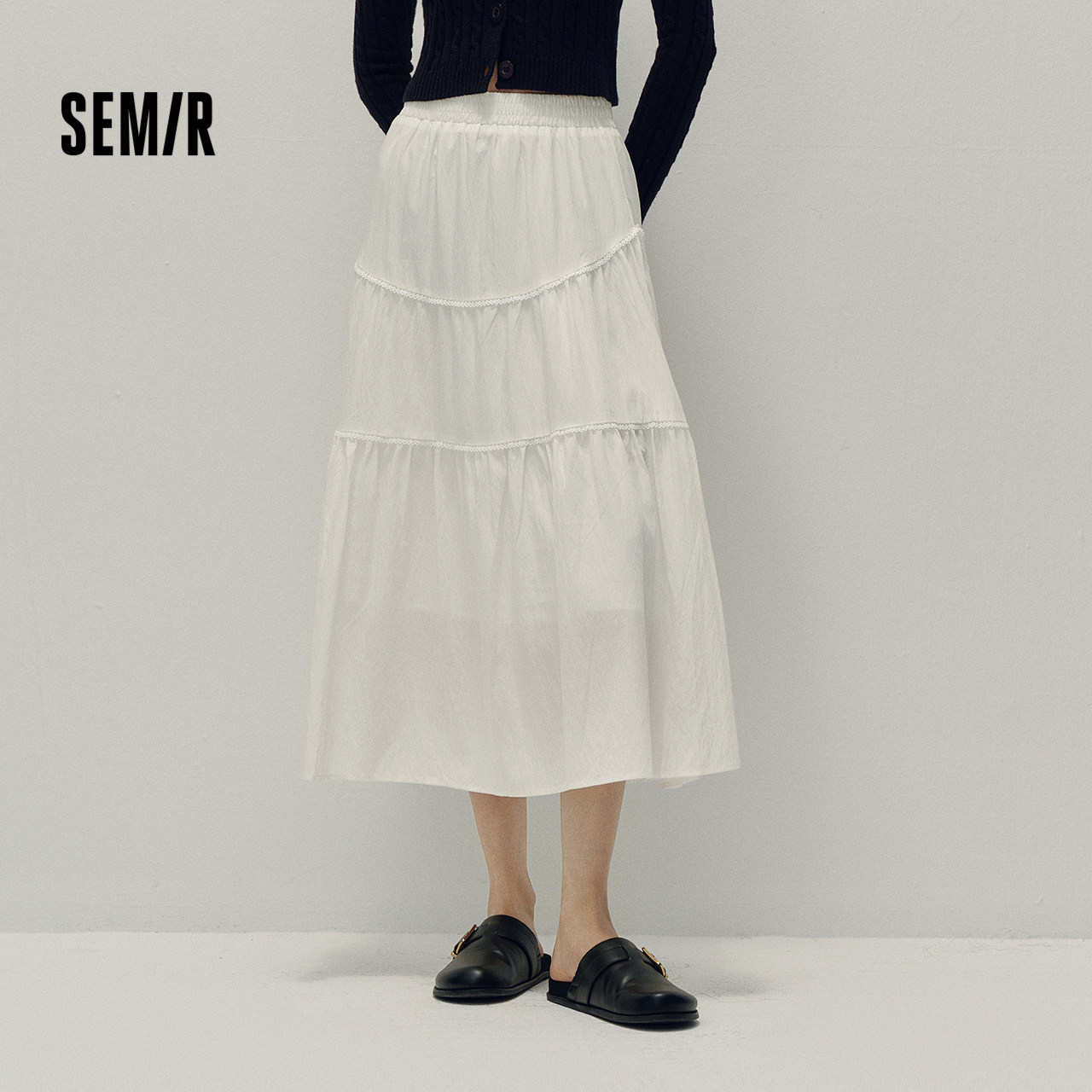 森马半身裙女夏季松紧腰肌理垂感分割A字裙宽松松弛感山本风长裙