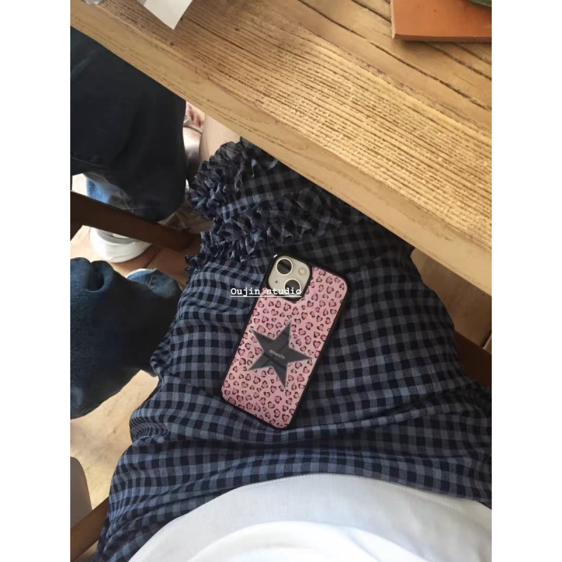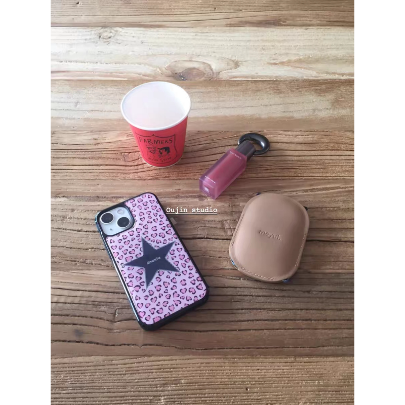 欧美风豹纹五角星亚克力黑边磁吸适用苹果iPhone16promax手机壳1312pro小米1415Pro华为mate60p70三星S23防摔