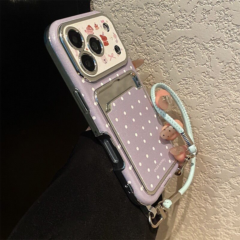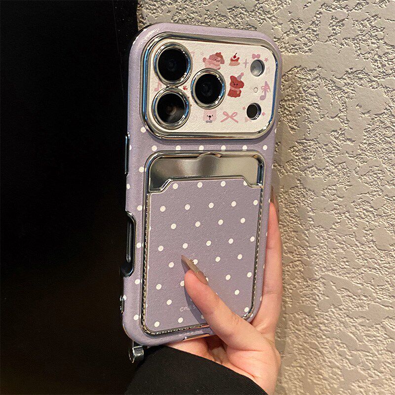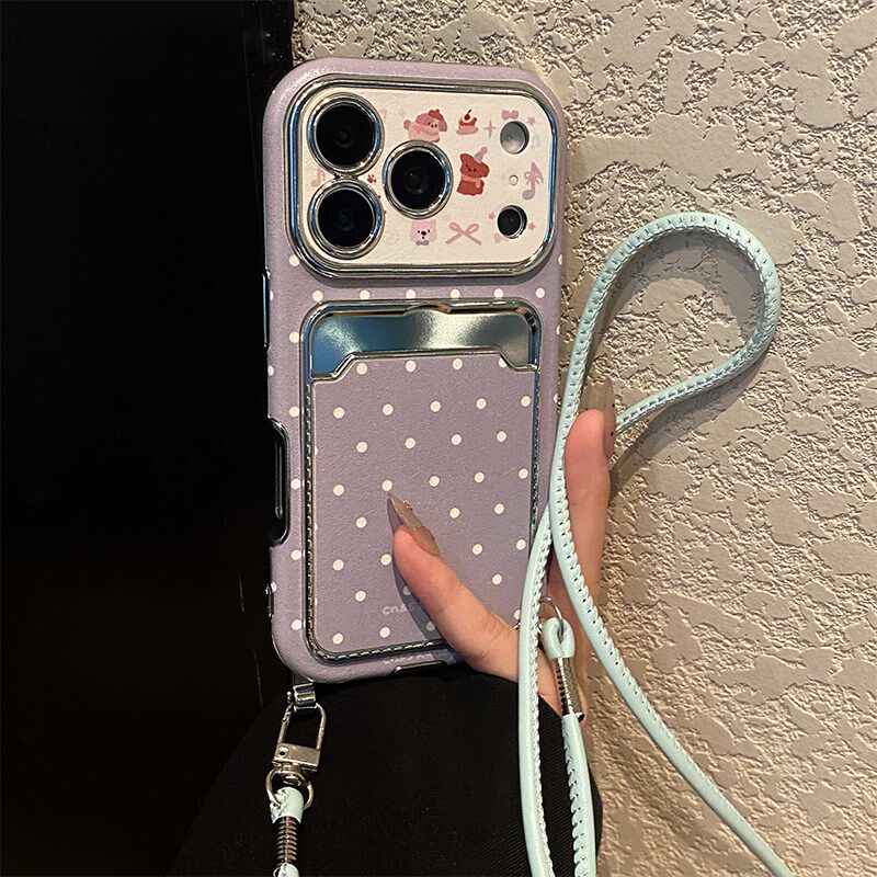 波点蝴蝶结小狗卡包适用苹果17promax手机壳华为pura80卡通mate70带opporeno14斜挎vivos30挂绳小米15红米k80
