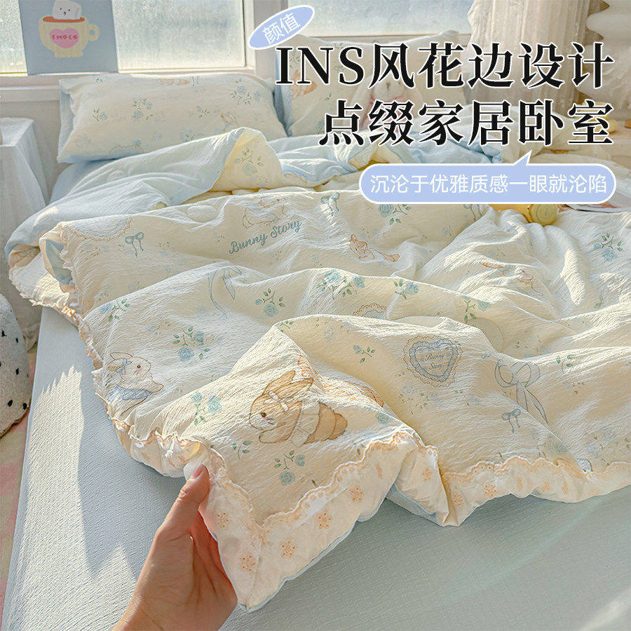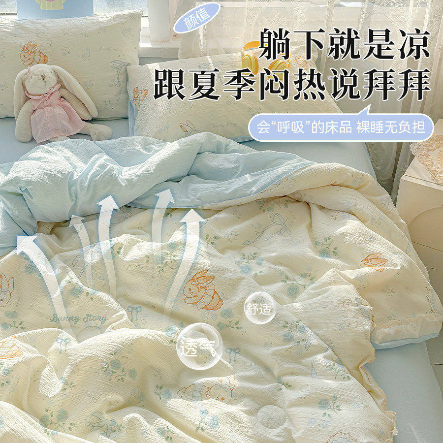 A类全棉双层纱夏凉被四件套空调被可机洗薄款被子夏季夏被三件套4