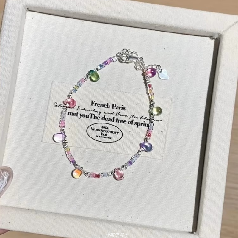 许愿幸运 水晶彩色 女款 手链 韩系 甜美 春夏 多巴胺 礼物 纯银