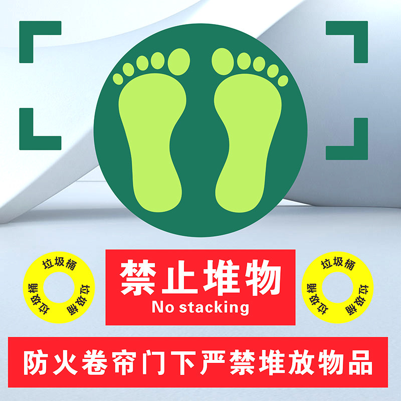 邮政银行6S管理标识贴5S定位彩色胶带L型四角定位贴防火卷帘门下严禁堆放物品禁止堆物绿植垃圾桶脚丫子标识