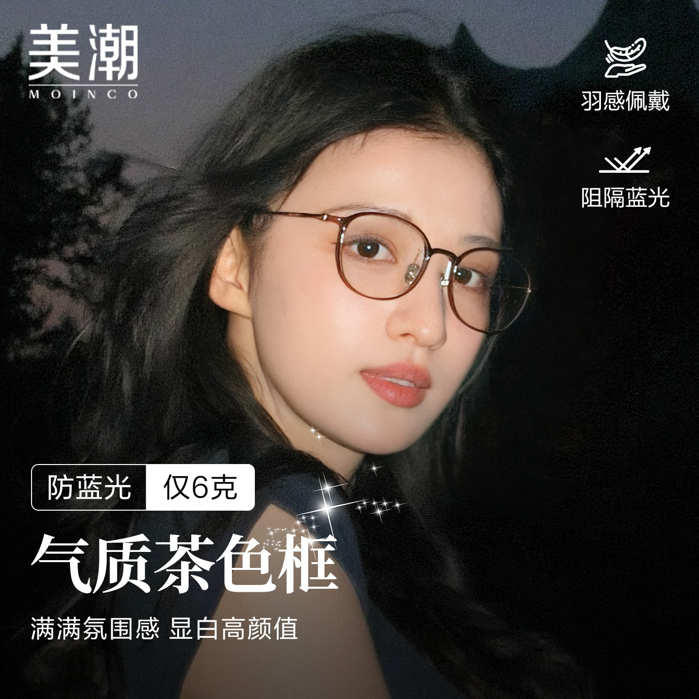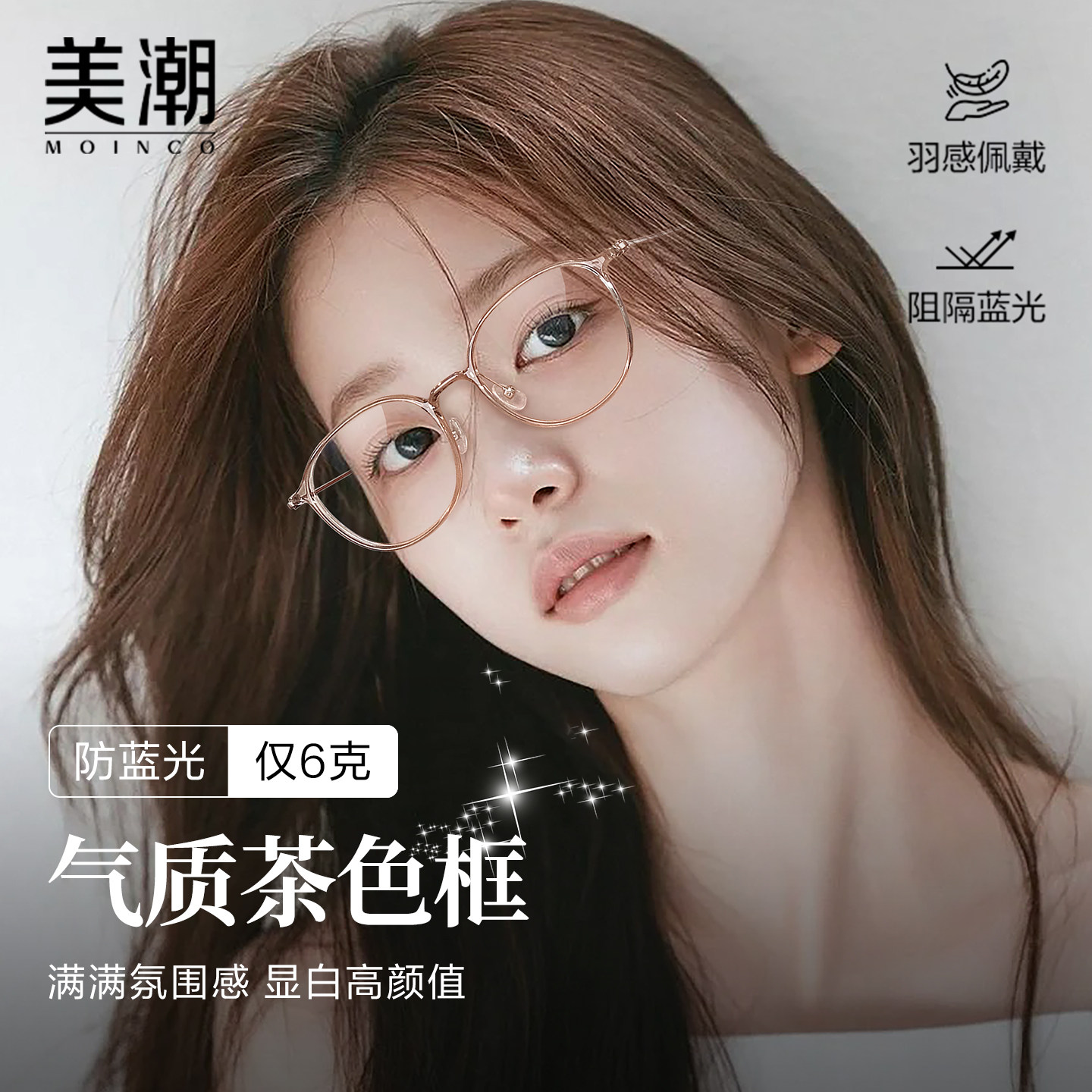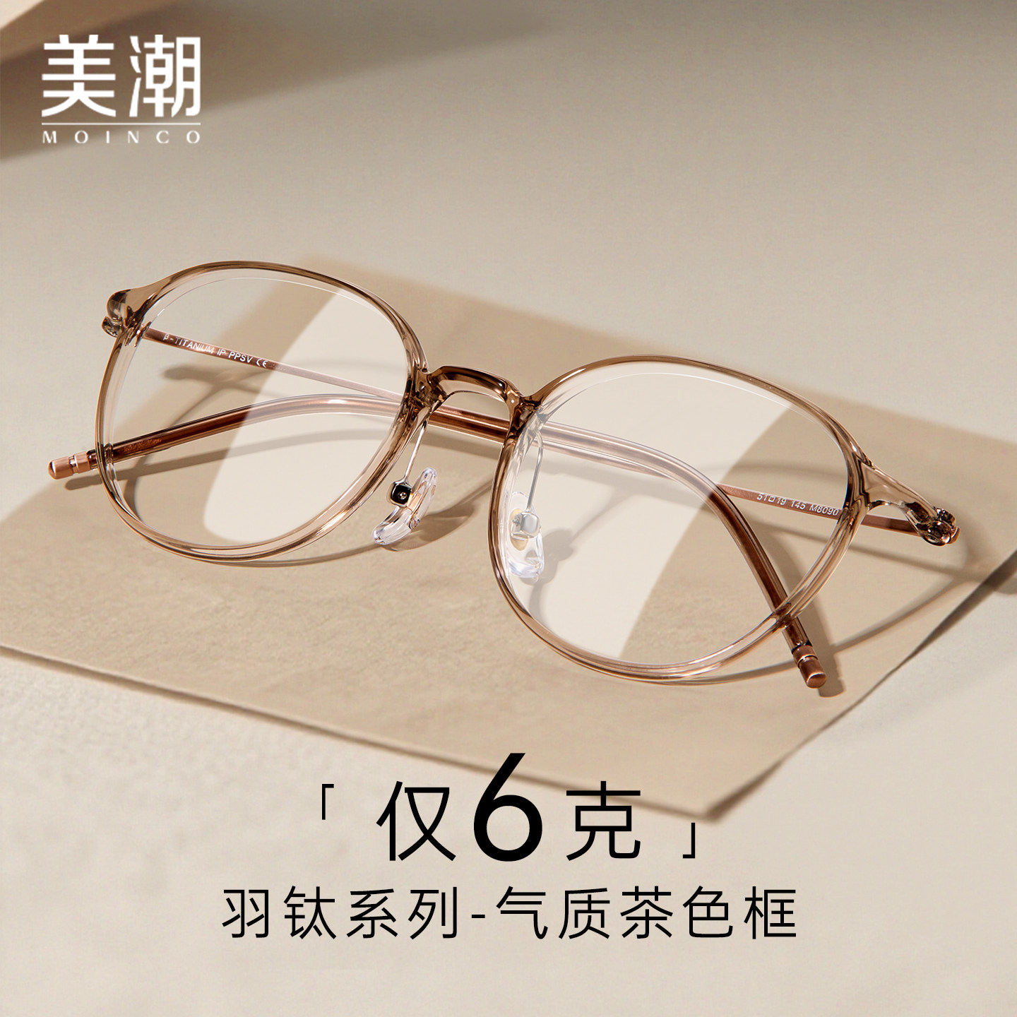 韩系超轻6克茶色圆框近视眼镜女款可配度数素颜显白防蓝光眼睛架