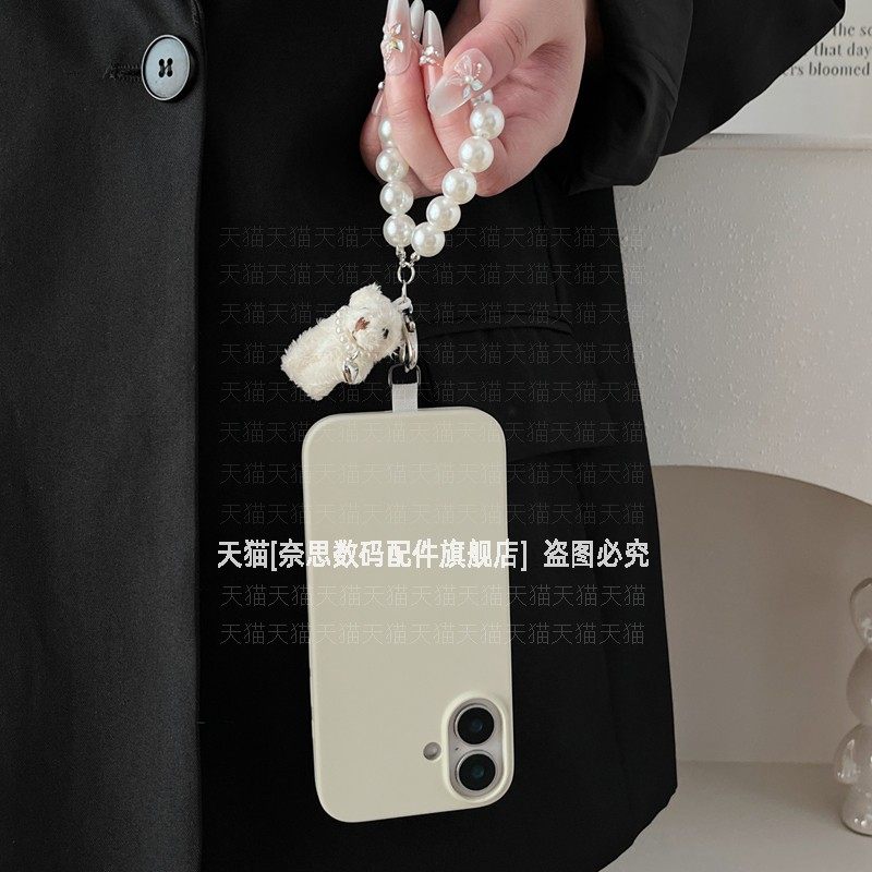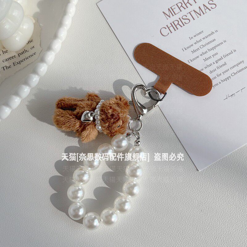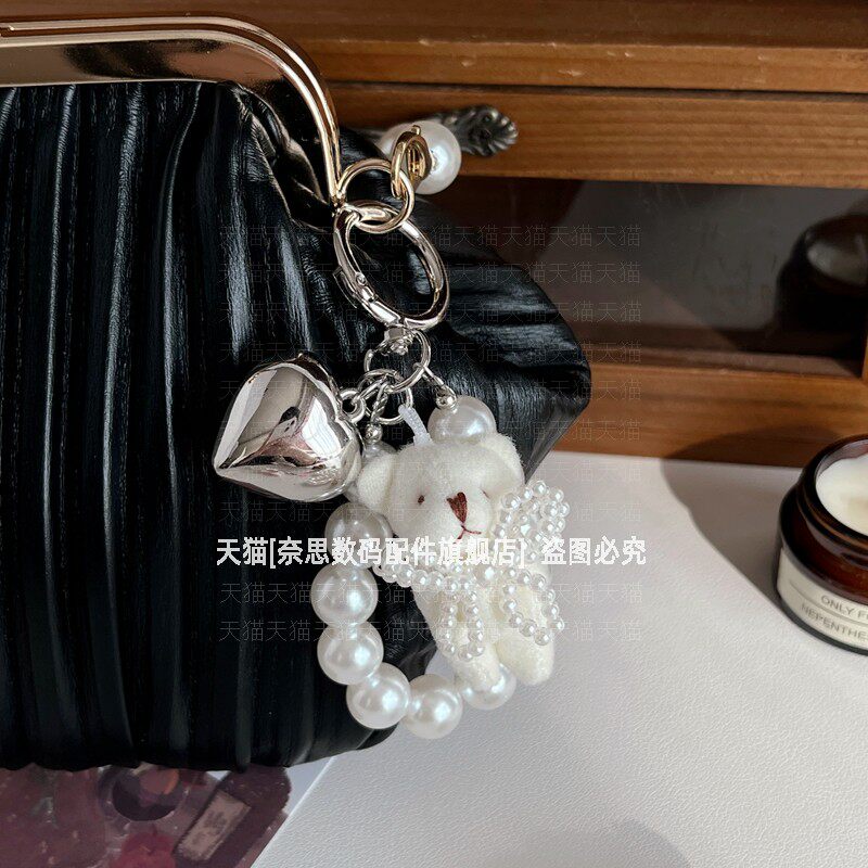 可爱小熊珍珠挂件通用手机壳包包钥匙扣挂链毛绒熊书包背包挂饰高端串珠迷你小手链装饰挂件防丢绳爱心夹片壳