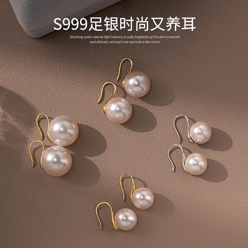 999纯银珍珠耳钉耳饰耳环女2025新款高级感高跟鞋耳钩耳坠足银