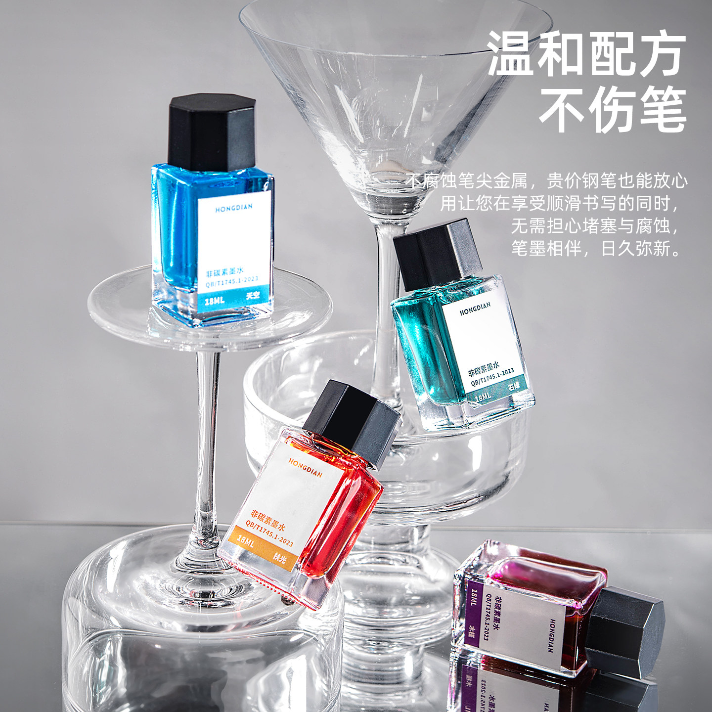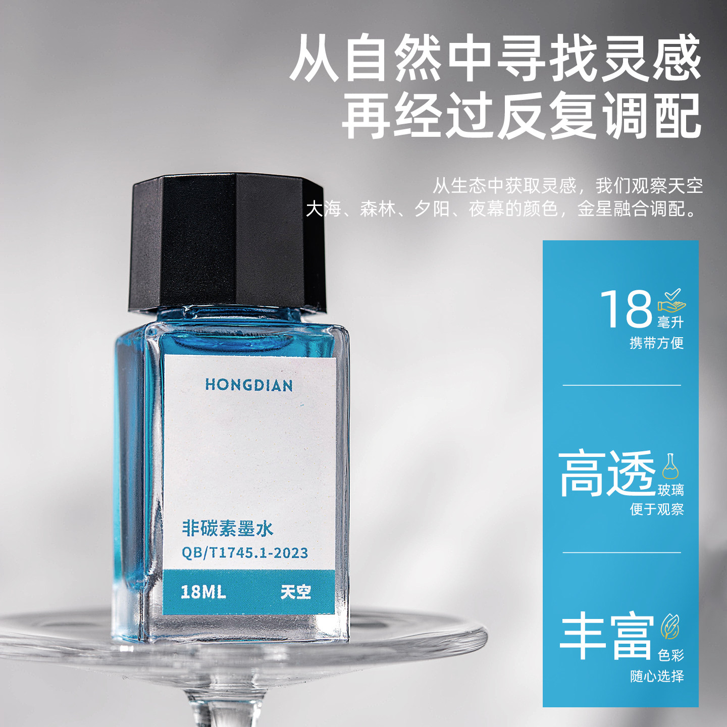 弘典墨水钢笔用彩色非碳素黑色蓝黑水性颜料不堵笔毛笔书法16色18毫升多色彩可调色蘸水古典国风系列染料彩墨