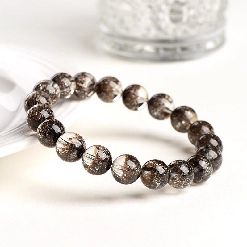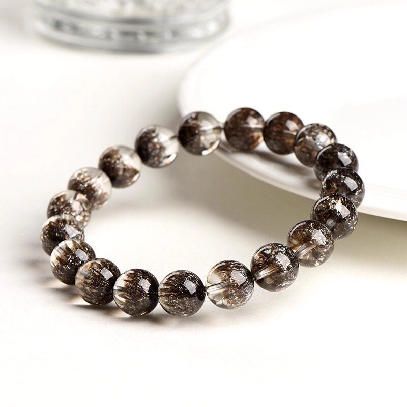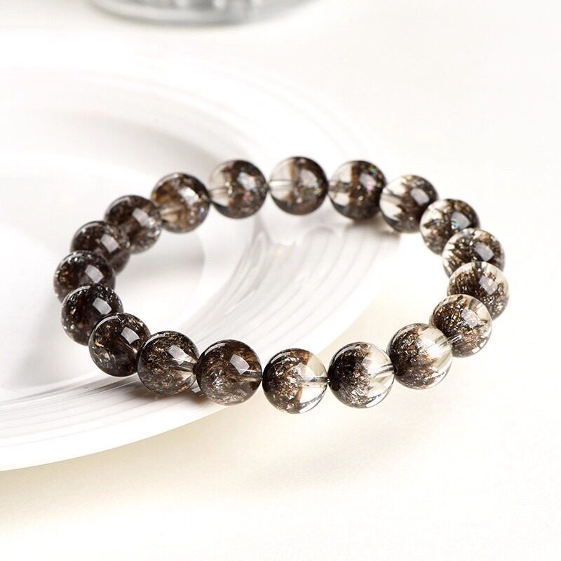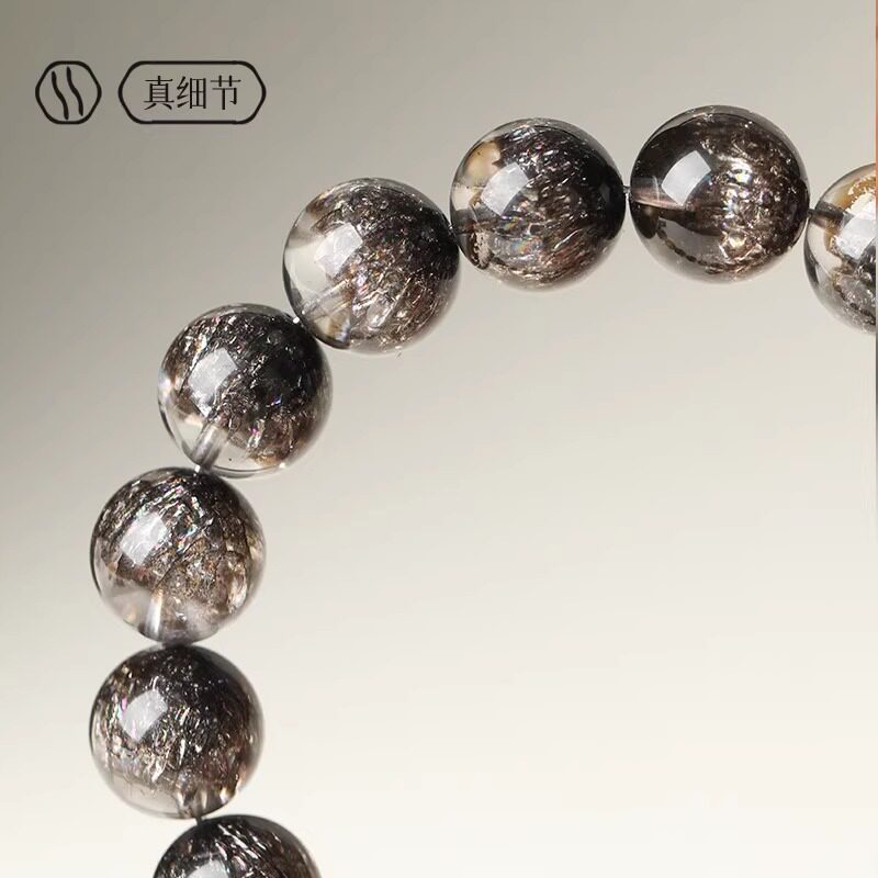 天然水晶黑加仑聚宝盆水晶手链男女款黑超七圆珠手串云母片散珠子