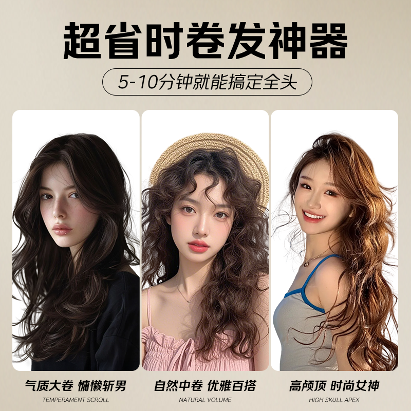 lena蛋卷头卷发棒32mm三管蛋蛋卷棒深v大卷负离子夹板卷发水波纹