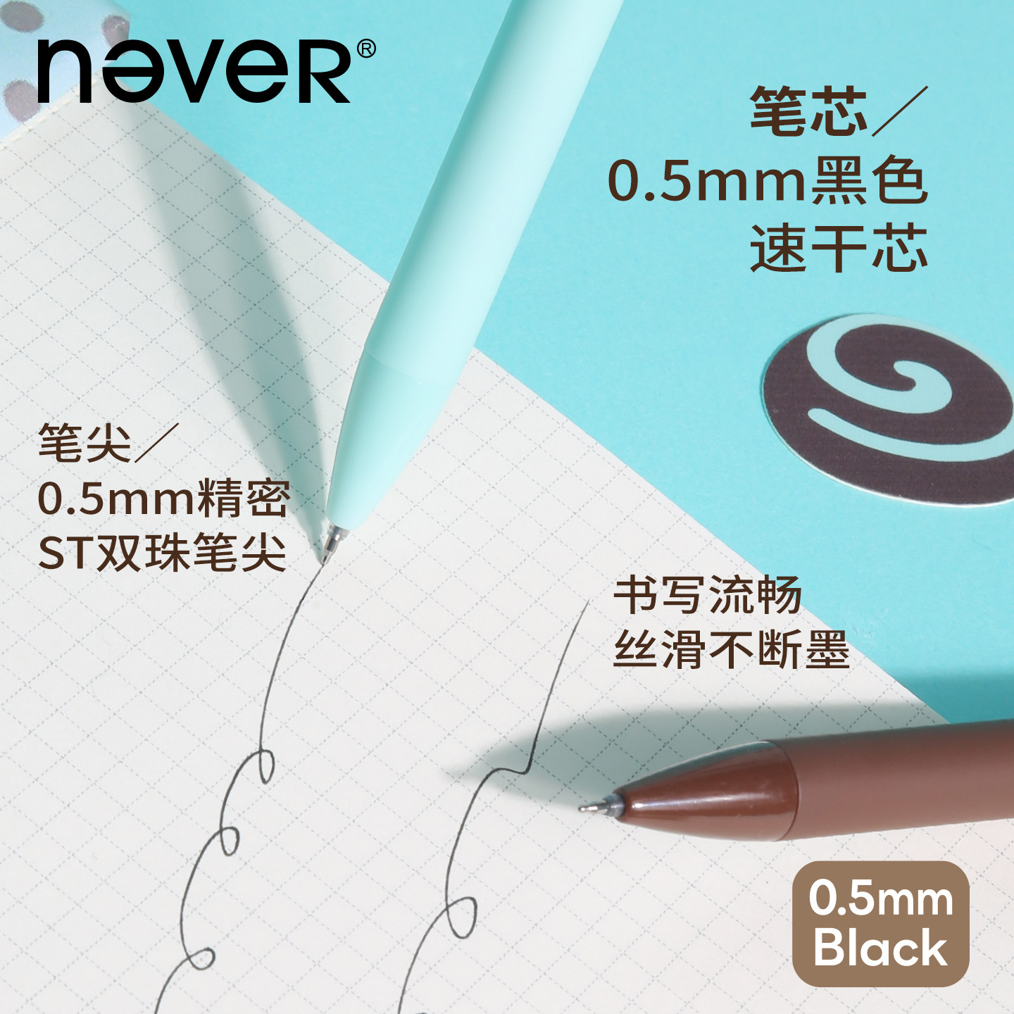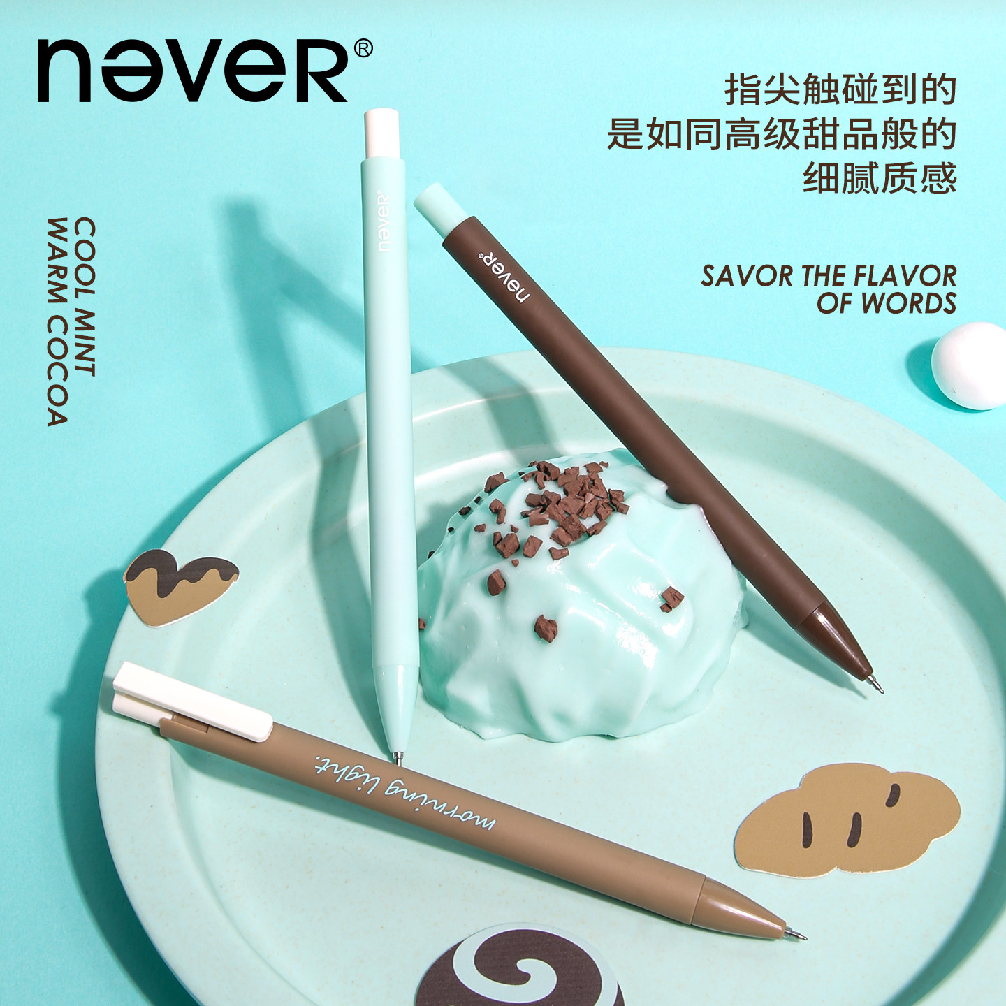 【2026新款】never下午茶笔薄荷生巧按动中性笔高颜值ins风速干顺滑细腻质感