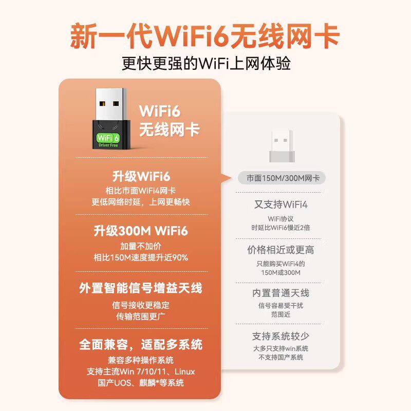 USB免驱动无线网卡笔记本台式机电脑wifi6接收发射器无限上网卡连接热点外置网络外接千兆5G双频信号免驱动