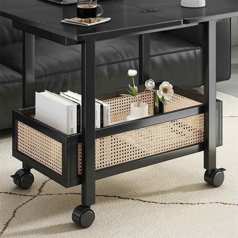 移动茶几可折叠桌子小户型客厅家用沙发阳台餐桌两用实木中古推车