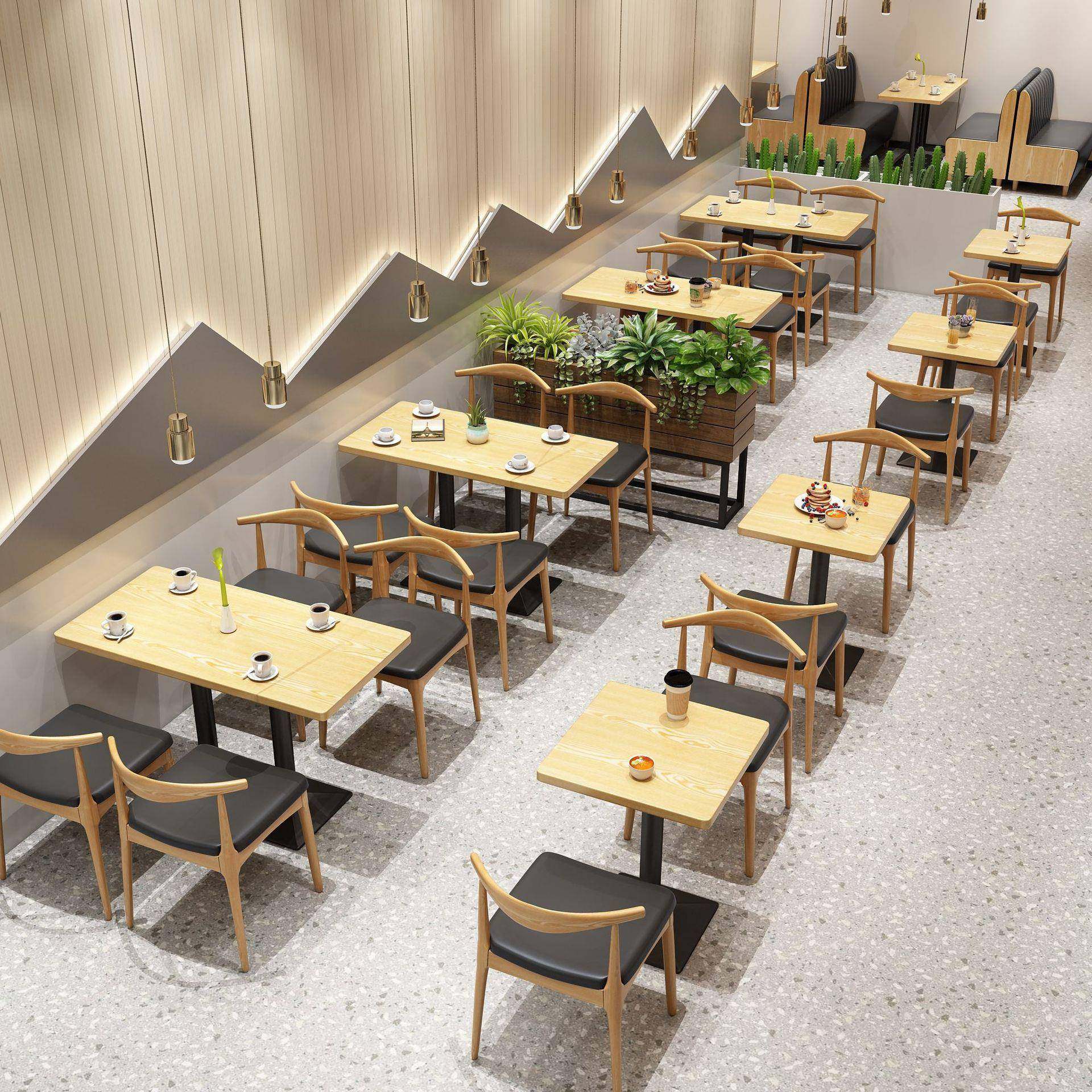 简约餐厅卡座沙发商用食堂桌椅组合 实木休闲小吃奶茶店饭店桌椅