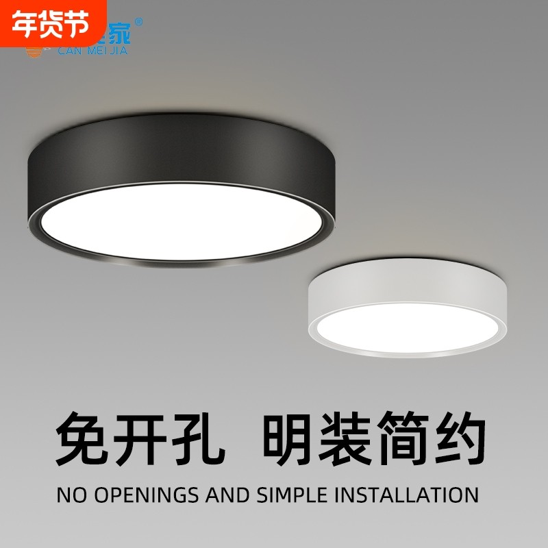 LED超薄明装筒灯圆形窄边极简小吸顶桶灯走廊过道射灯开孔卫生间