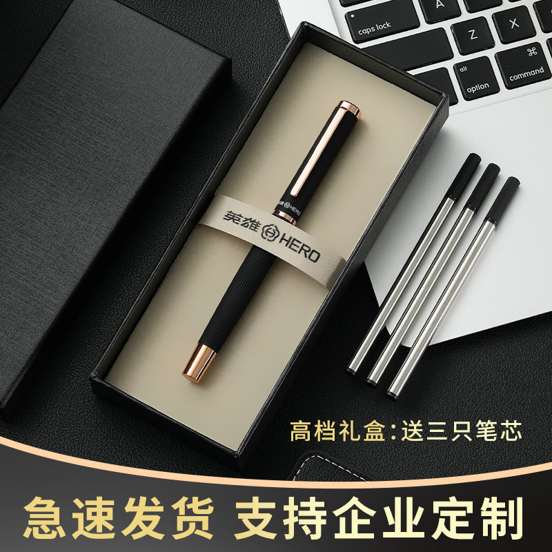 英雄签字笔官方旗舰店A33金属商务办公刷题礼盒装高颜值男女士办公用黑色中性笔重手感高档耐用