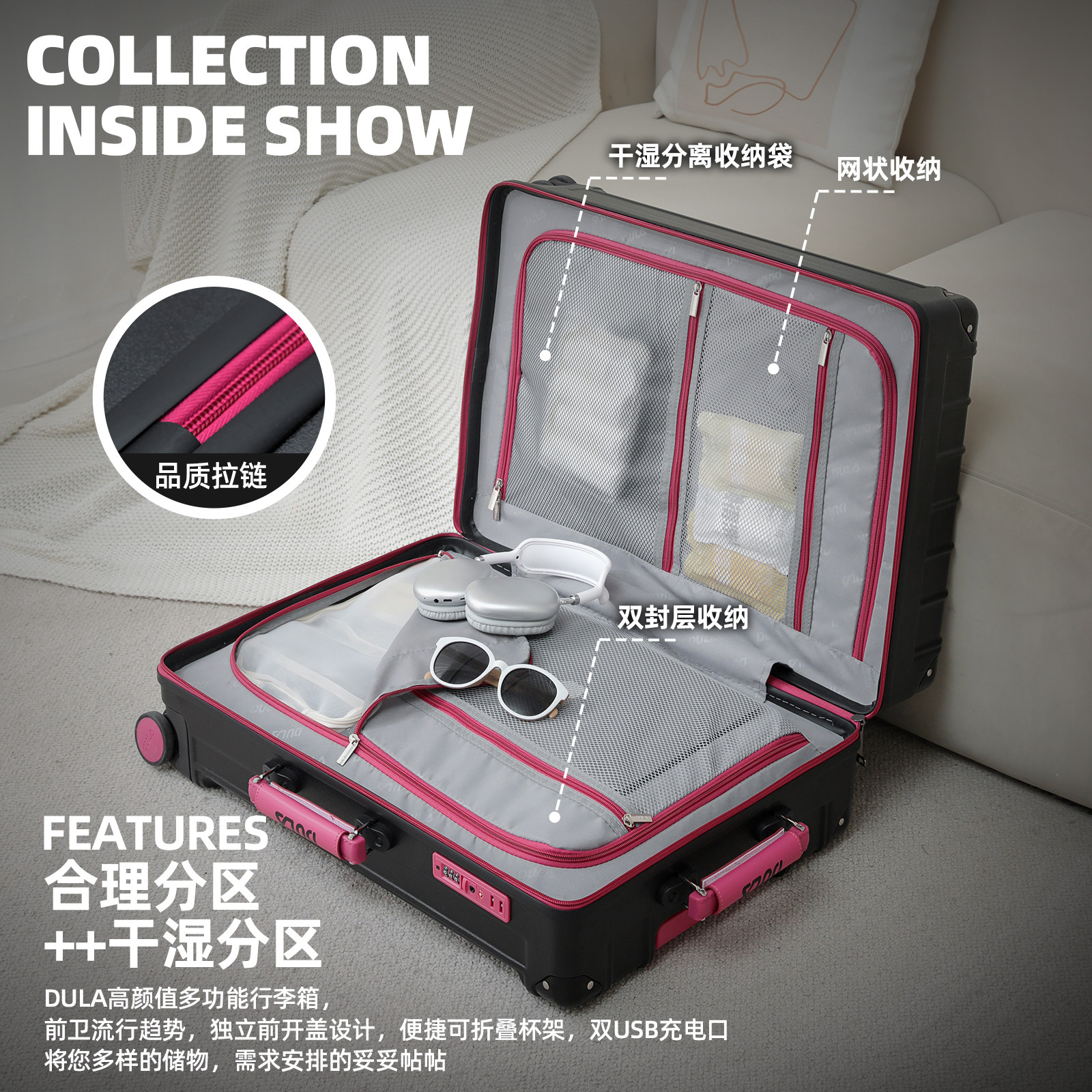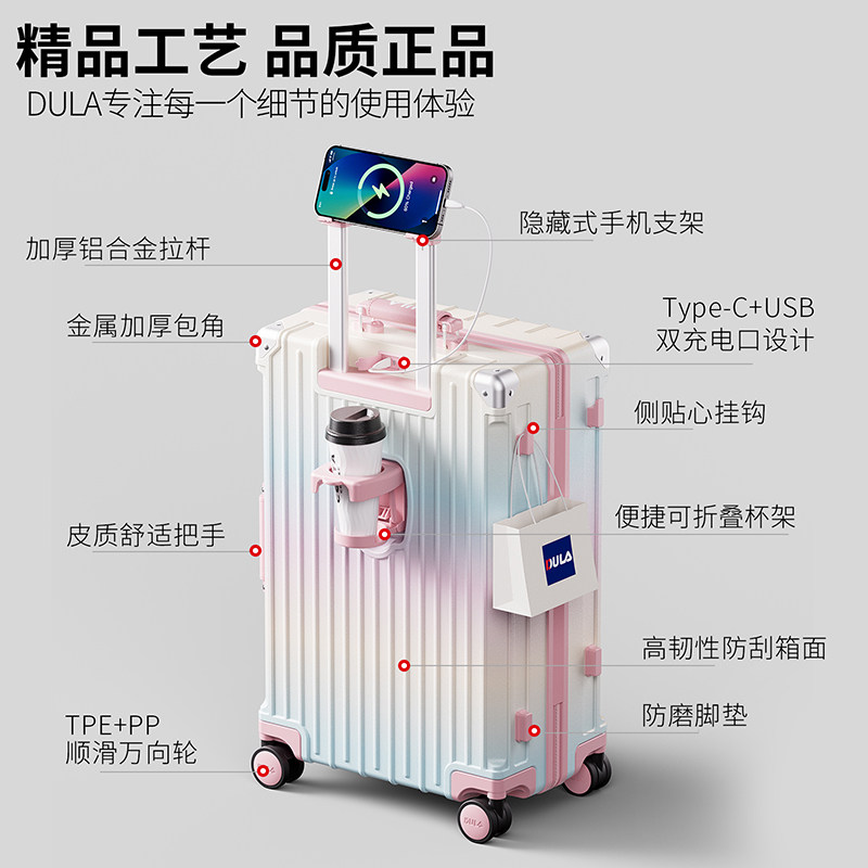 DULA2026新款高颜值PC多功能行李箱女拉杆箱男旅行箱登机箱皮箱子