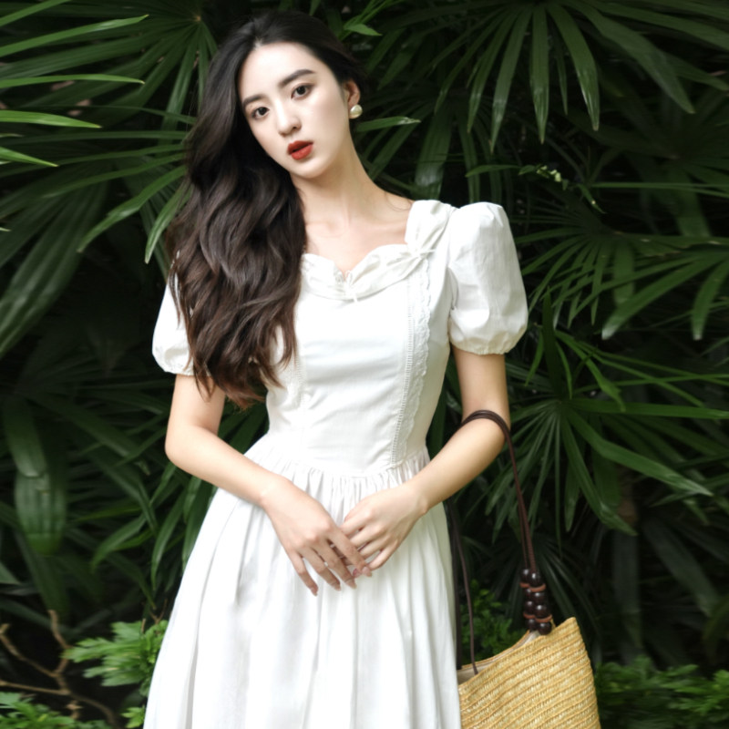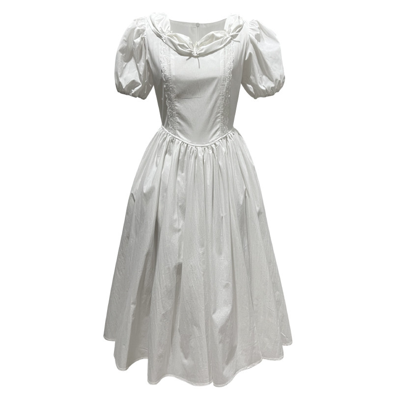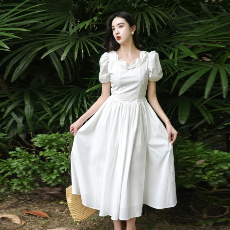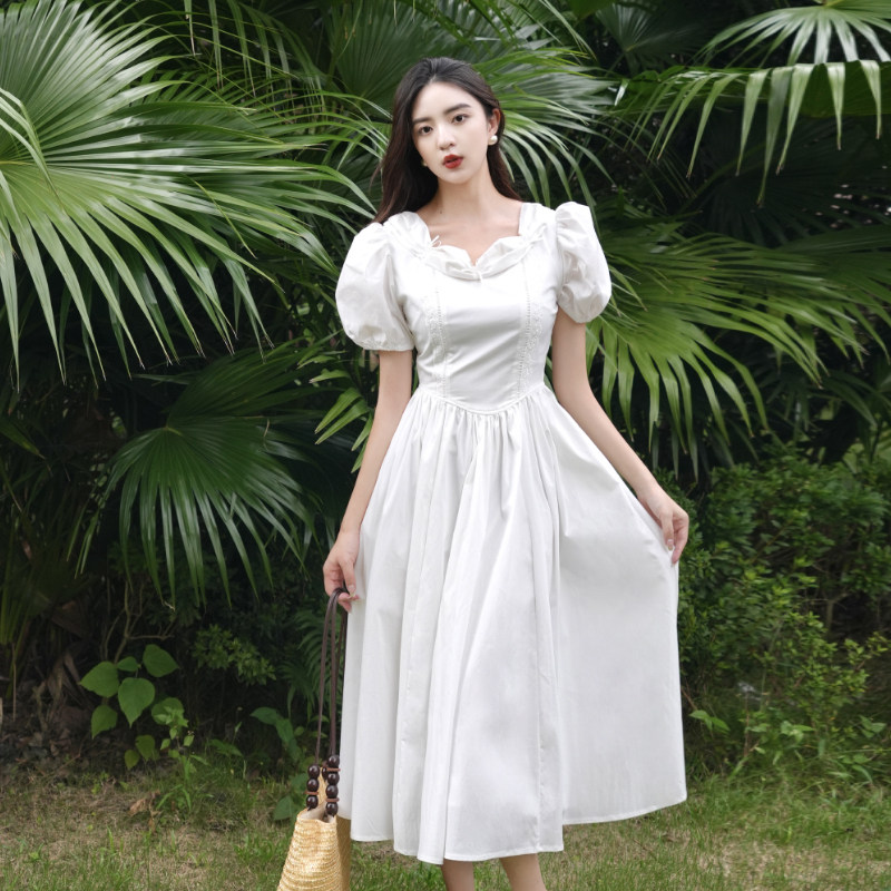 JUJU定制法式宫廷风设计感浪漫连衣裙领证小白裙显瘦中长裙女夏季