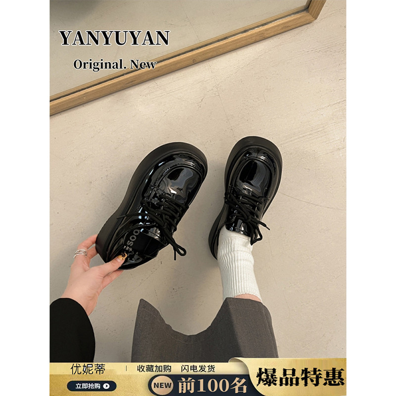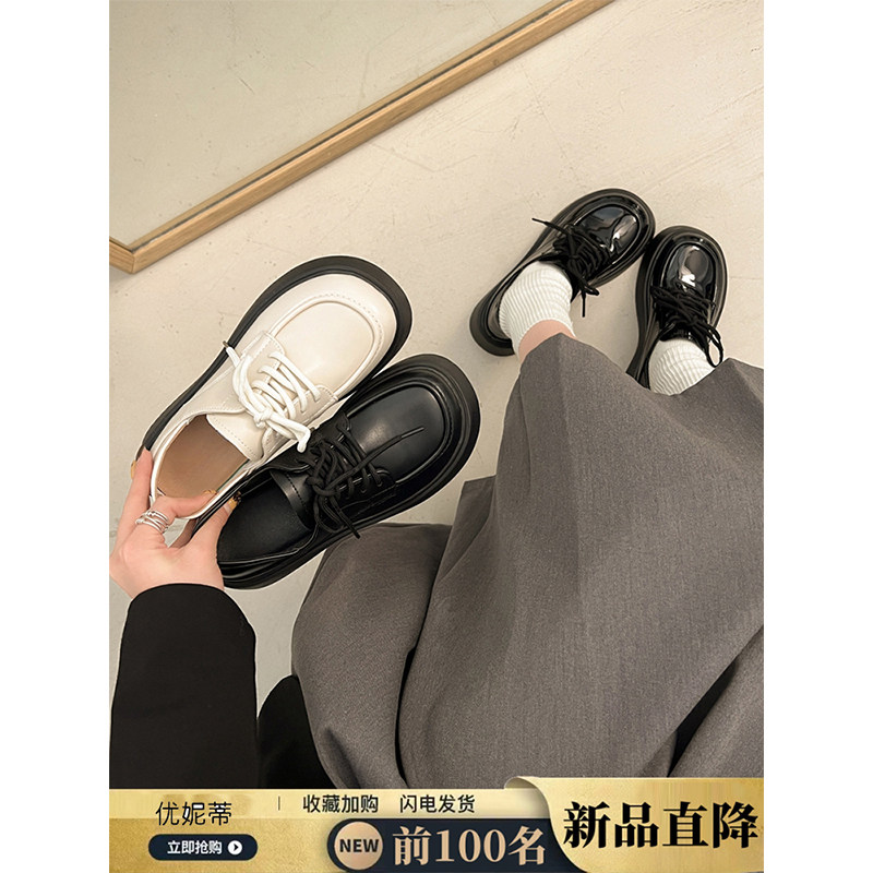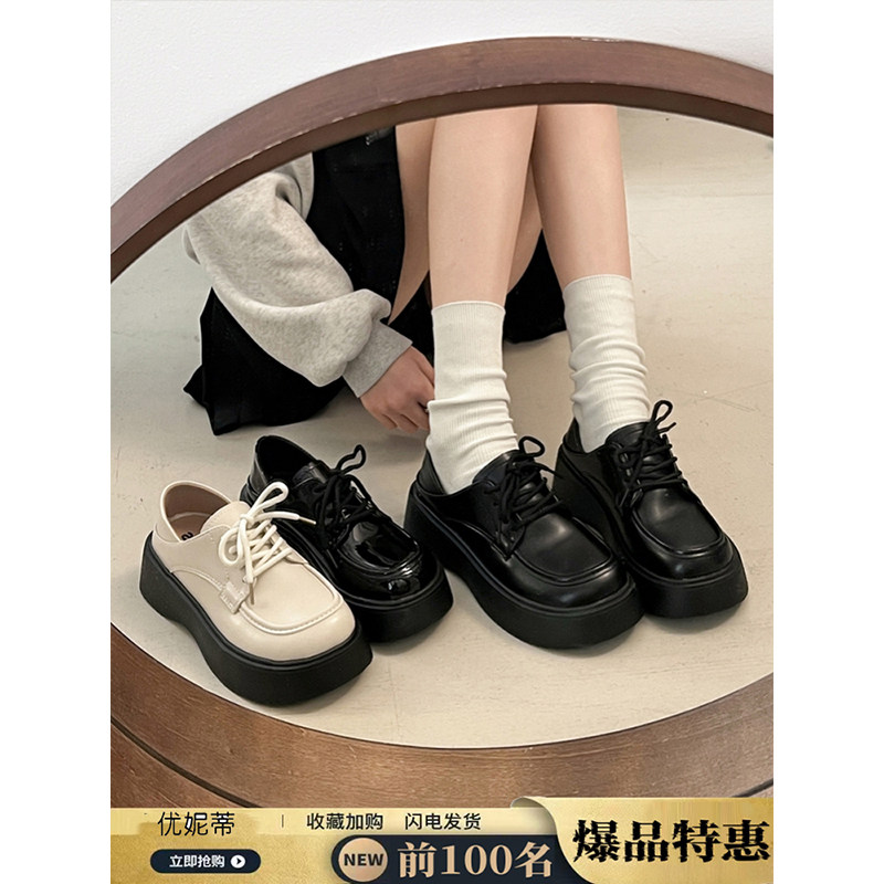 小皮鞋女春秋新款英伦风爆款黑色百搭松糕增高厚底乐福鞋单鞋中跟