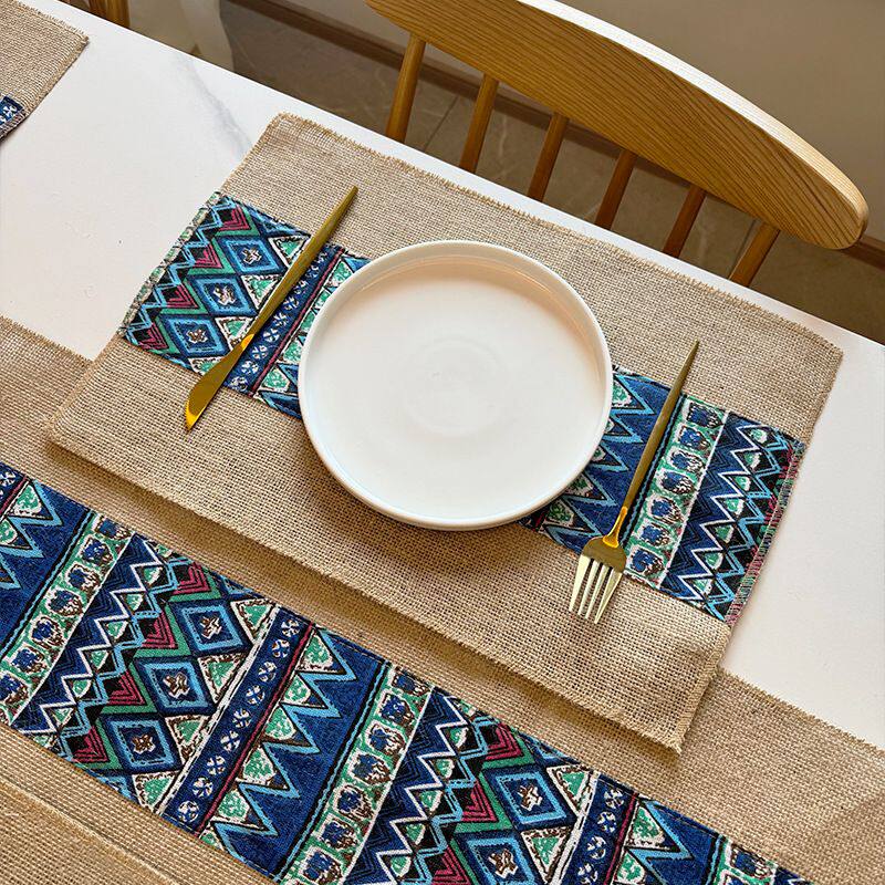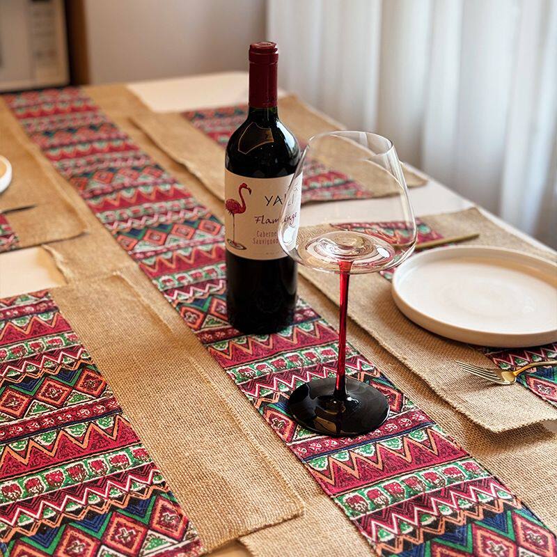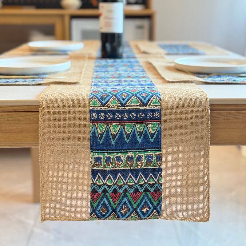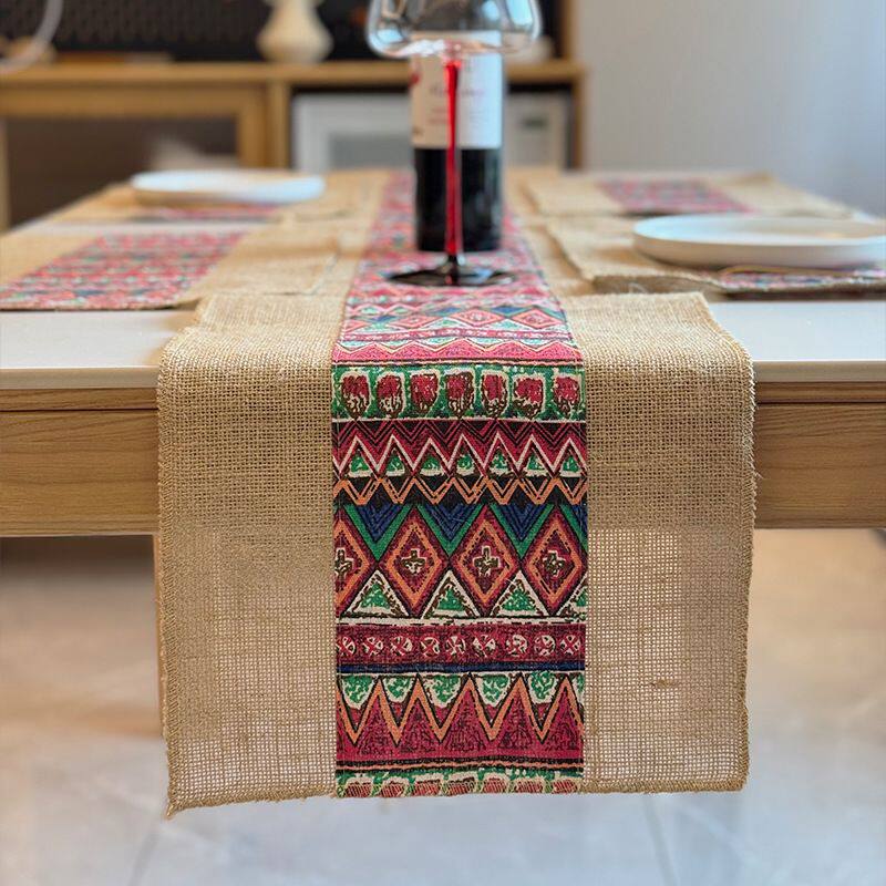 波西米亚风粗布黄麻桌旗手工粗麻茶巾派对新疆艾特莱斯长条餐桌巾