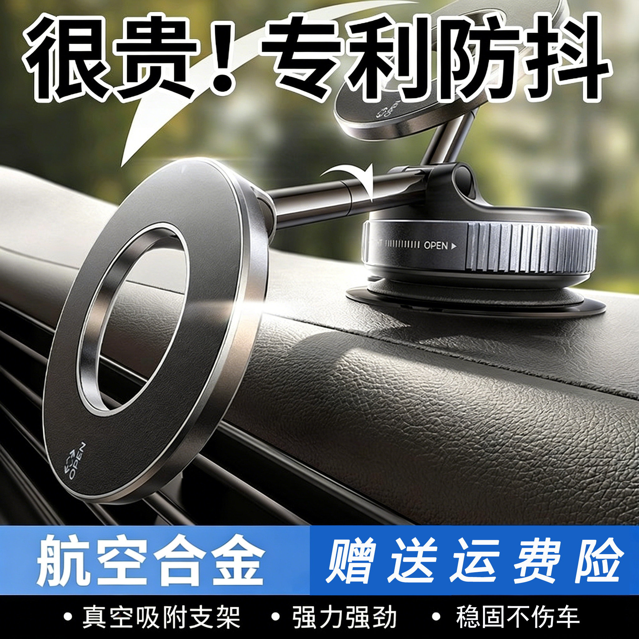 真空吸附磁吸车载手机支架2025新款吸盘车内导航手机架magsafe无线磁吸伸缩折叠便携架子墙壁通用神器