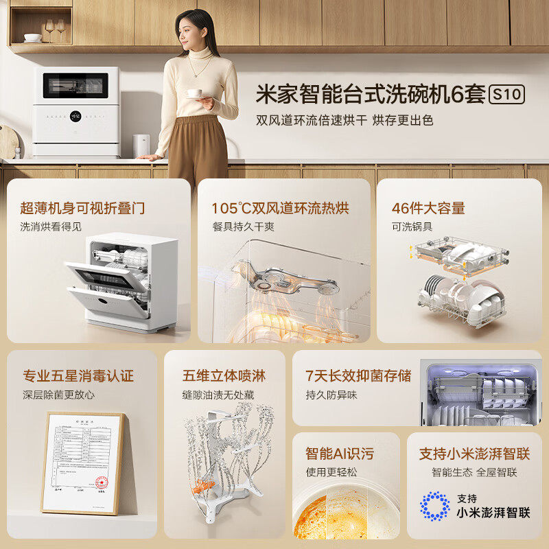 小米米家智能台式洗碗机6套S10母婴级消毒刷碗机小型厨房家用烘干