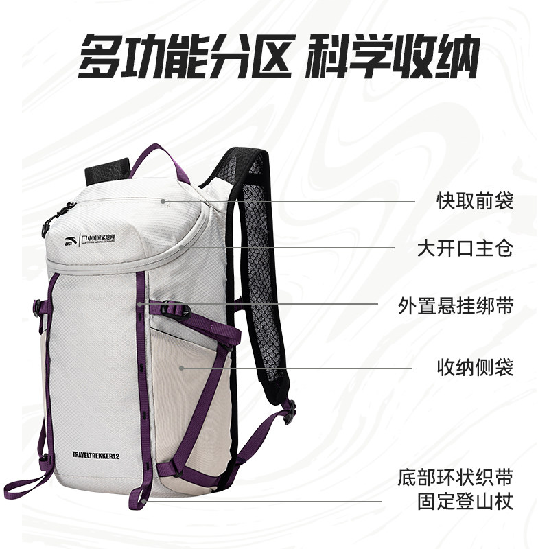 安踏×中国国家地理丨专业户外包徒步骑行背包轻质防泼水双肩包