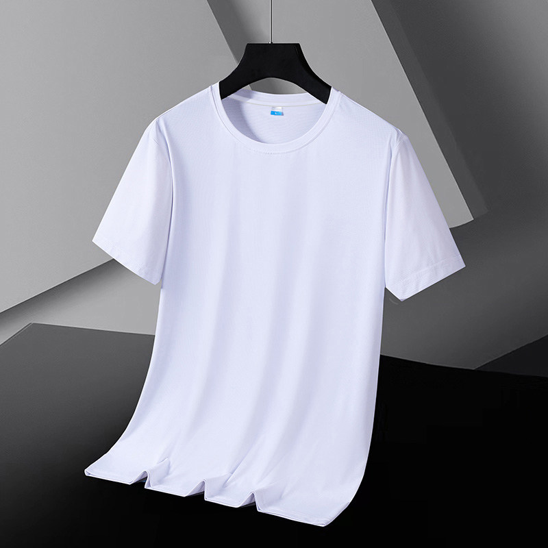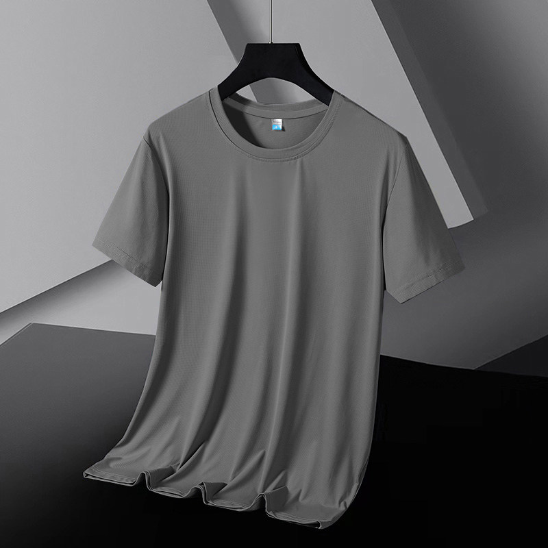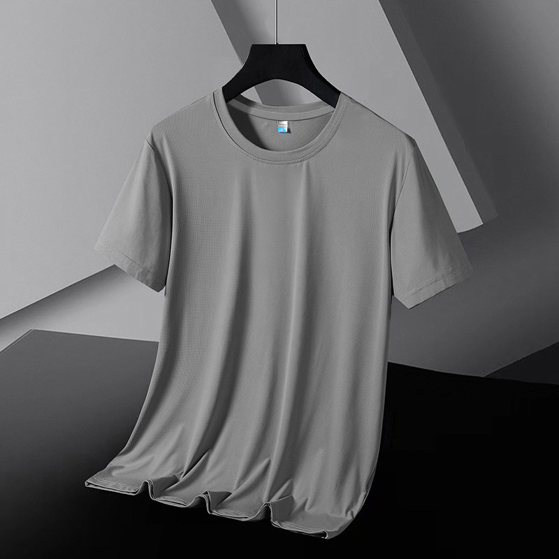 冰丝凉感b速干短袖t恤男夏季男士网眼透气运动大码上衣真黑色薄款