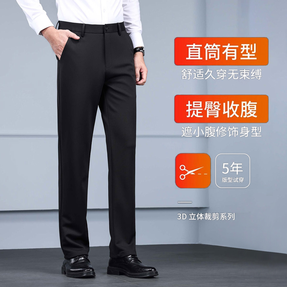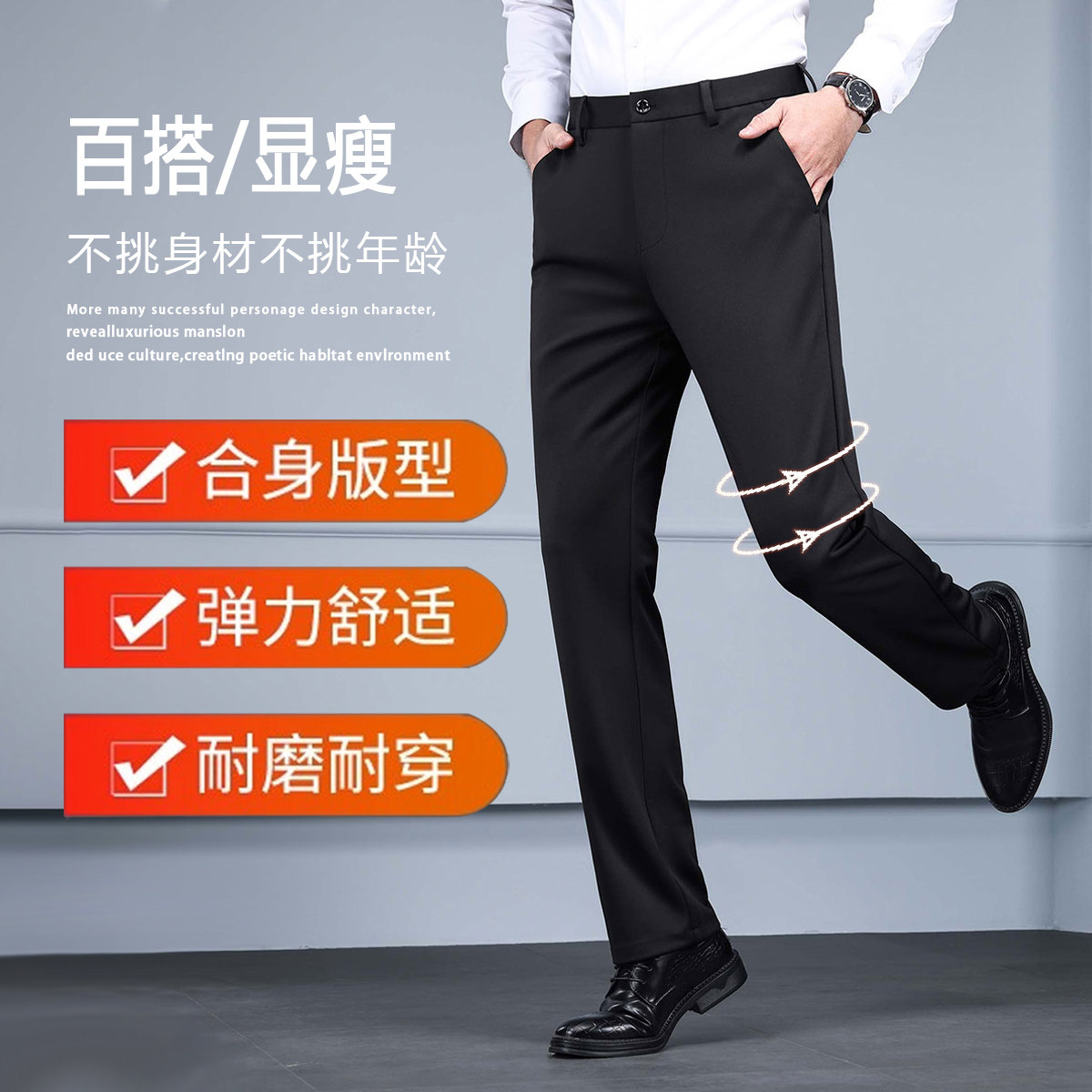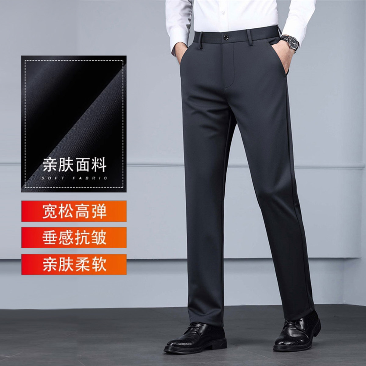 秋季弹力西裤男士休闲裤子男黑色加绒宽松长裤直筒商务男裤高薄款