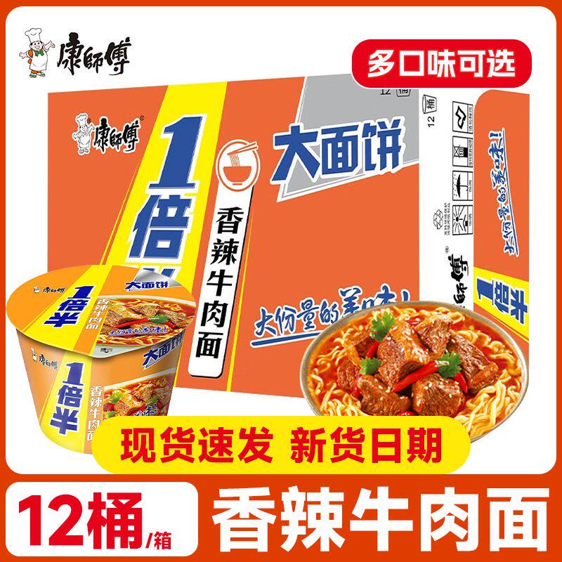泡面整箱康师傅一倍半桶面方便面12桶红烧香辣牛肉藤椒大面饼速食