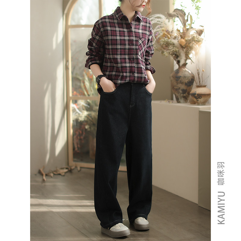 四面弹丹宁色牛仔阔腿裤25年新款宽松显瘦牛仔长裤89173